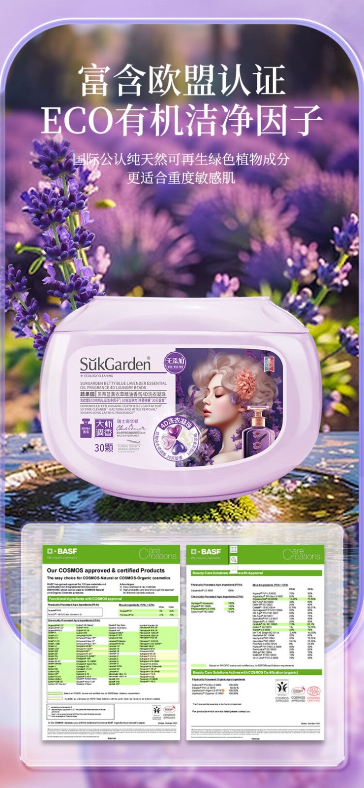 蔬果园 SukGarden 贝蒂蓝薰衣草精油香氛4D洗衣凝珠-10g*30颗 SGY0379