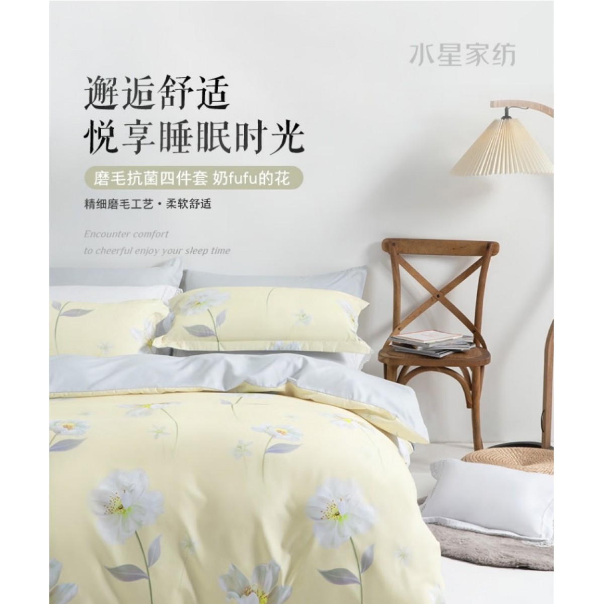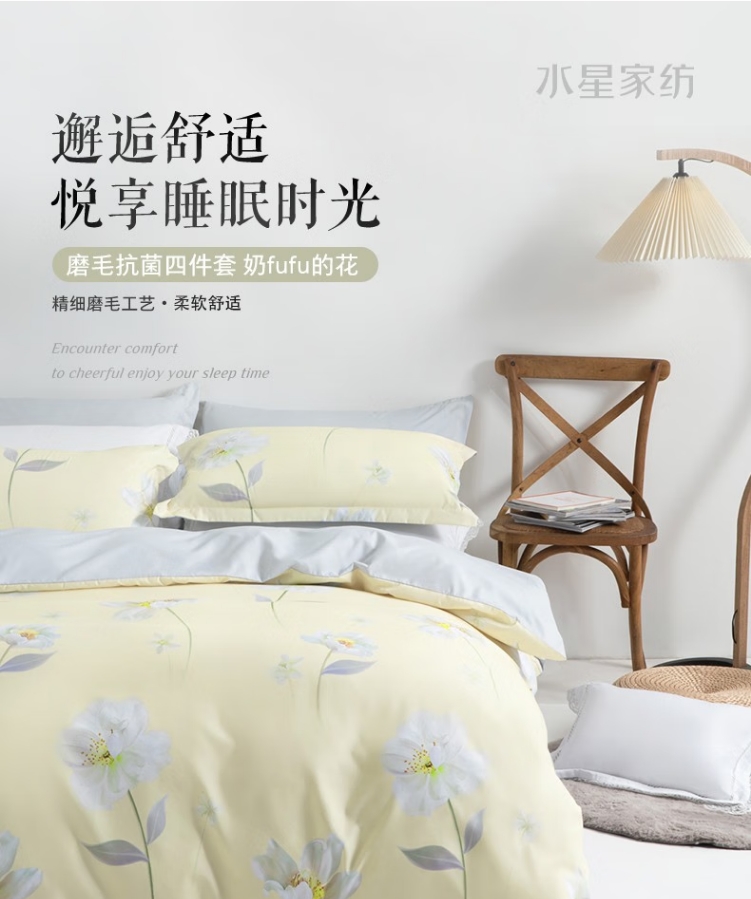 奶fufu的花磨毛印花抗菌四件套