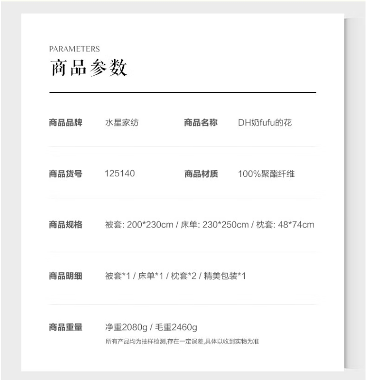 床单尺寸 :230*250cm