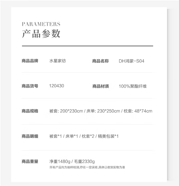 商品名称:水星家纺 鸿蒙全涤磨毛四件套 1.5m床 200cm×230cm 120430