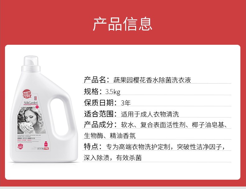 商品名称:蔬果园 SukGarden 樱花香水除菌洗衣液 3.5kg SGY0100