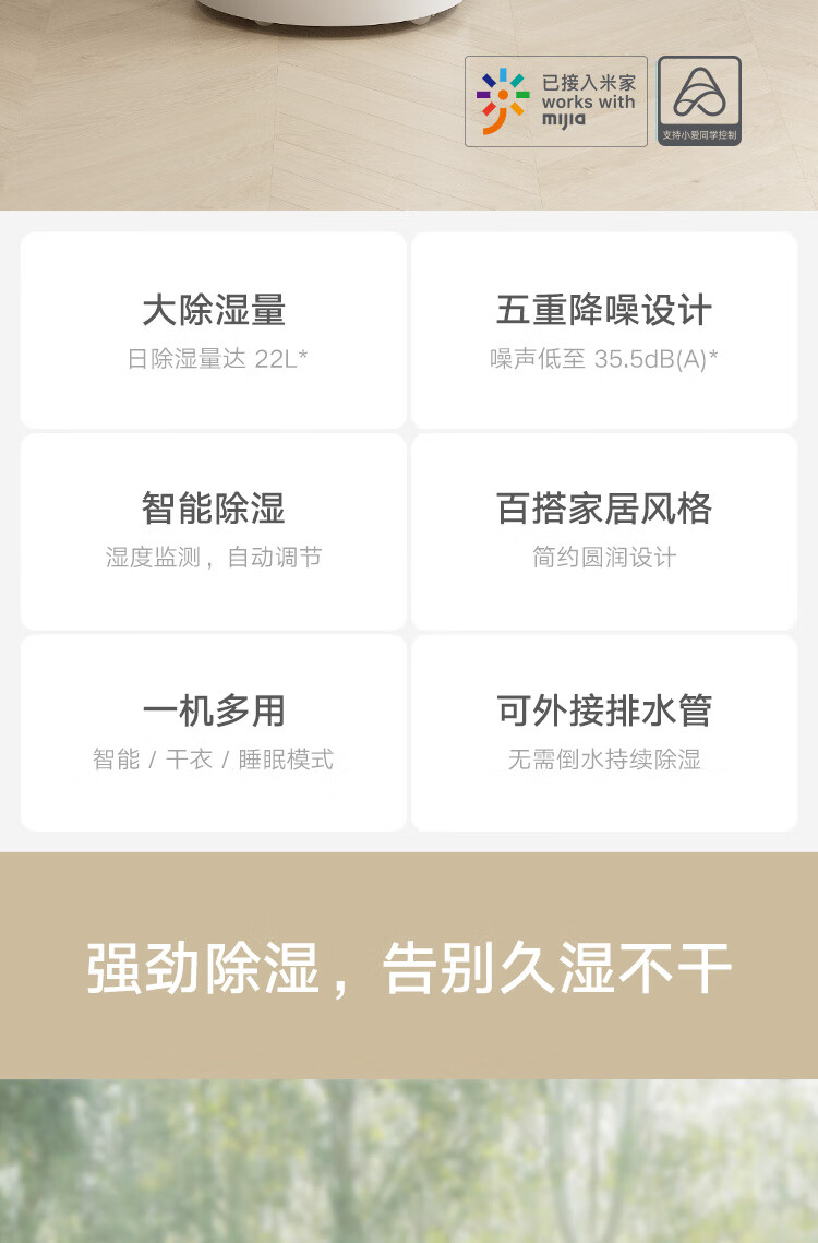 小米 除湿机 家用抽湿机 大除湿量 每日可达22L