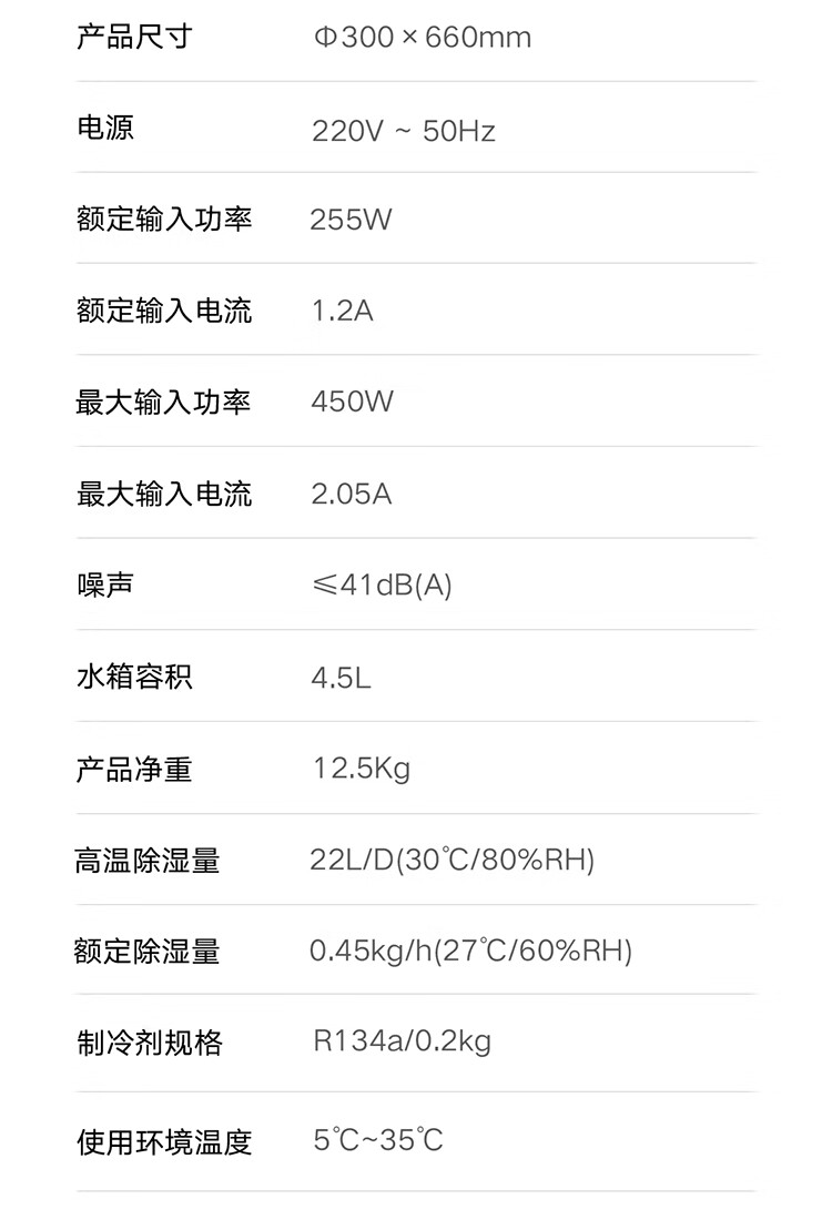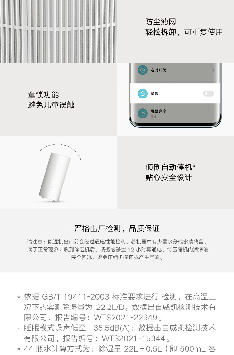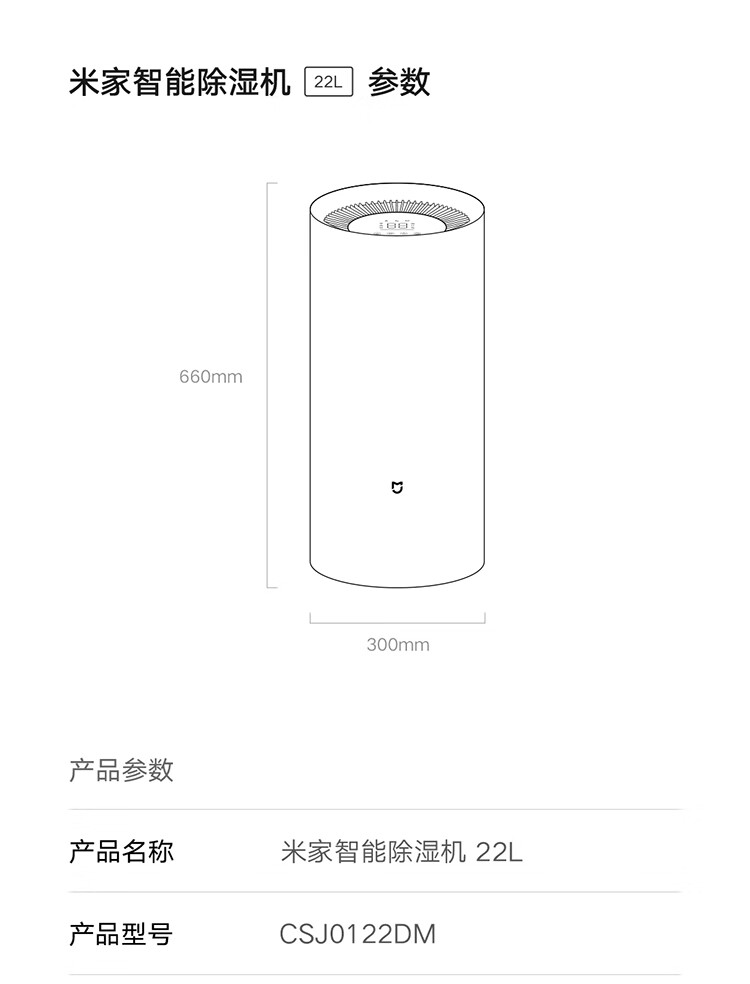 商品名称:小米 除湿机 家用抽湿机 大除湿量 每日可达22L