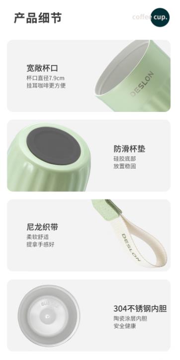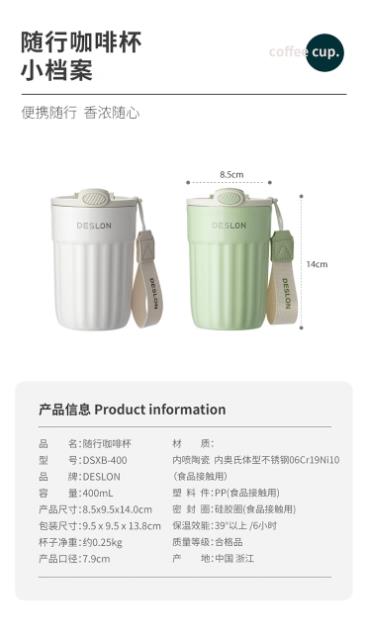 商品名称:德世朗(DESLON) 随行咖啡杯 400mL DSXB-400-GN(绿色)/DSXB-400-WH(白色)