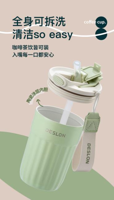 德世朗(DESLON) 随行咖啡杯 400mL DSXB-400-GN(绿色)/DSXB-400-WH(白色)