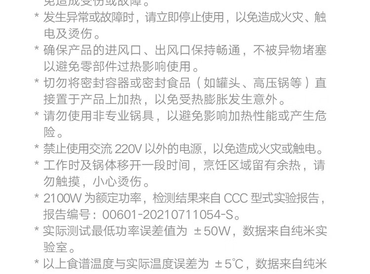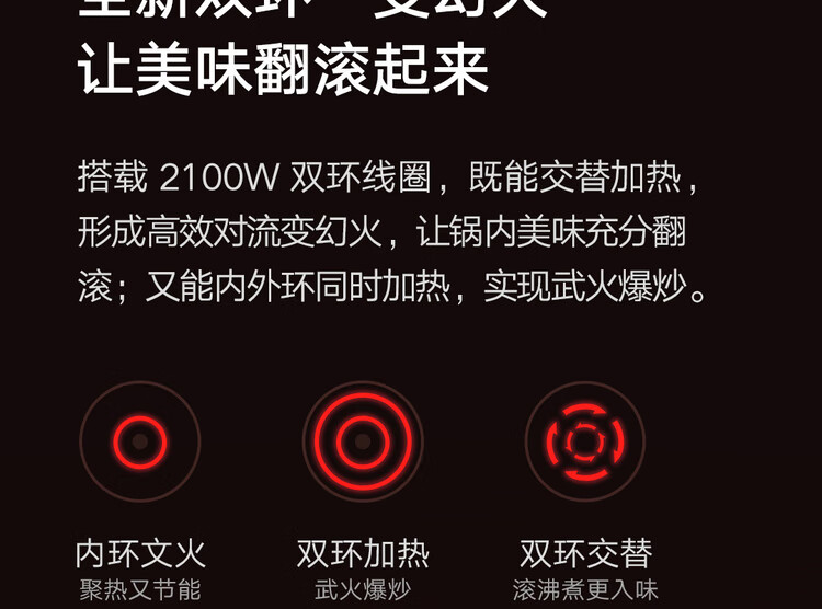 商品名称:小米 电磁炉2 大功率猛火爆炒 99档火力 2100w