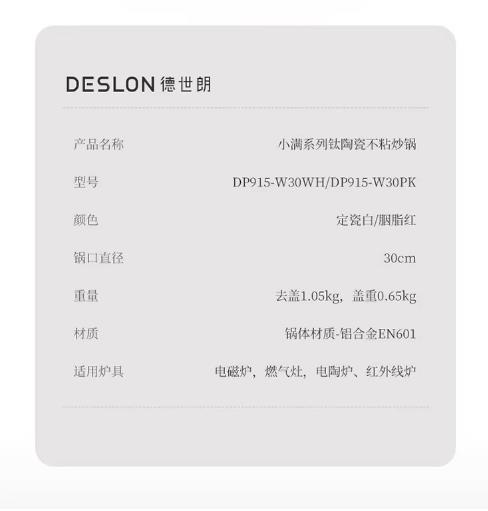 商品名称:德世朗(DESLON) 小满系列钛陶瓷不粘炒锅 30cm DP915-W30WH