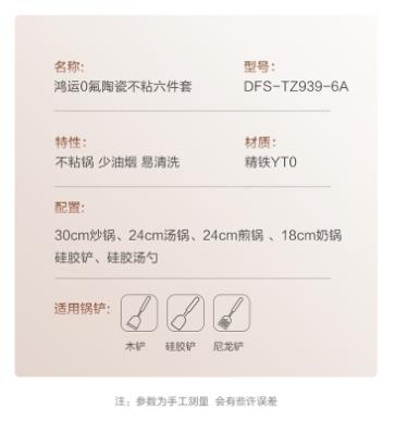 商品名称:德世朗(DESLON) 鸿运0氟陶瓷不粘四件套 DFS-TZ939-4A