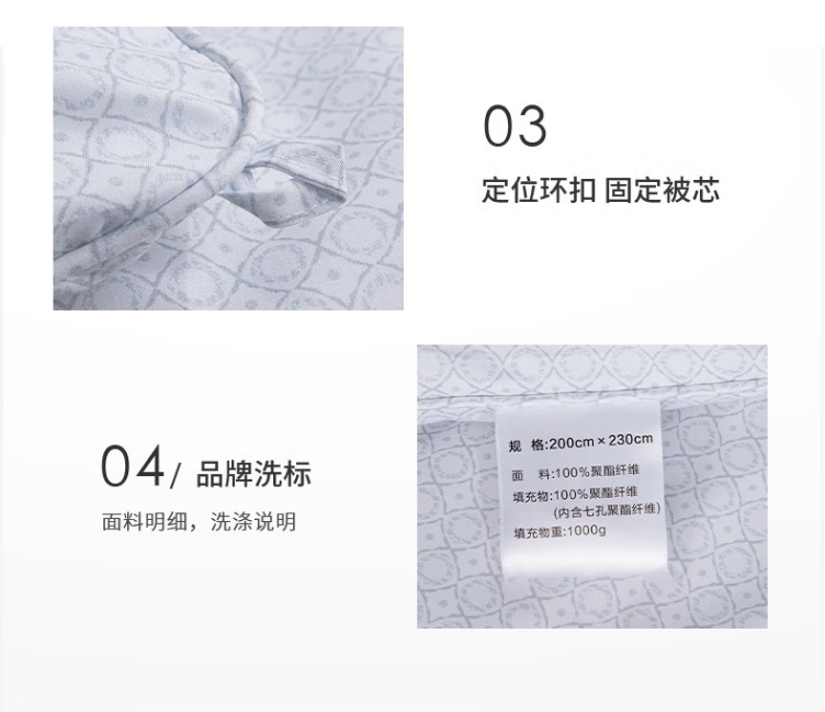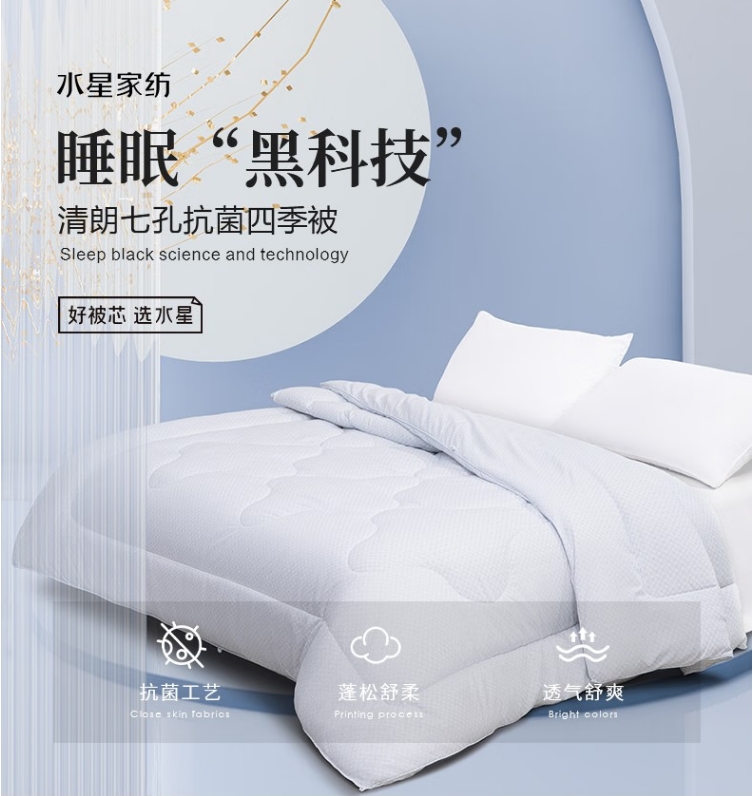 商品名称:水星家纺 清朗七孔抗菌四季被 1.5米床 200*230cm 125540