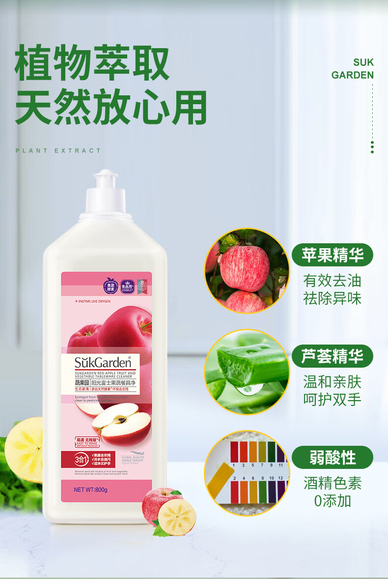 蔬果园 SukGarden 阳光富士果蔬餐具净(半透瓶)泵装-800g SGY0344