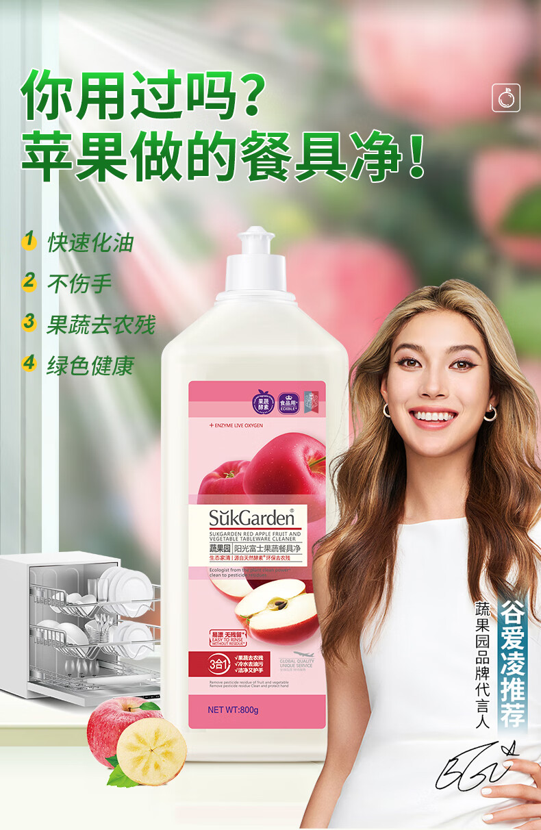 商品名称:蔬果园 SukGarden 阳光富士果蔬餐具净(半透瓶)泵装-800g SGY0344