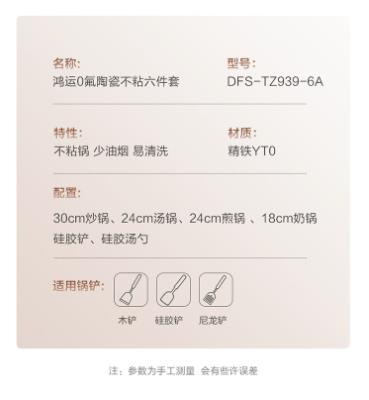 商品名称:德世朗(DESLON) 鸿运0氟陶瓷不粘六件套 DFS-TZ939-6A