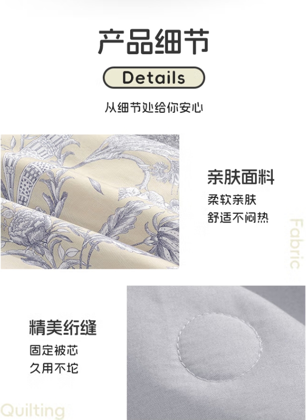 商品名称:水星家纺 寻意繁花全棉抗菌夏被 200cm*230cm 127595