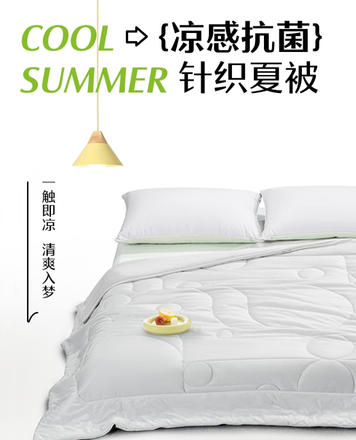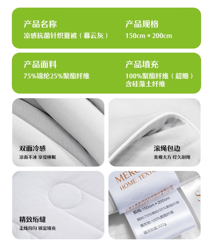 商品名称:水星家纺 凉感抗菌针织夏被 150cmx200cm (奶冰粉)127529 /(暮云灰)127530