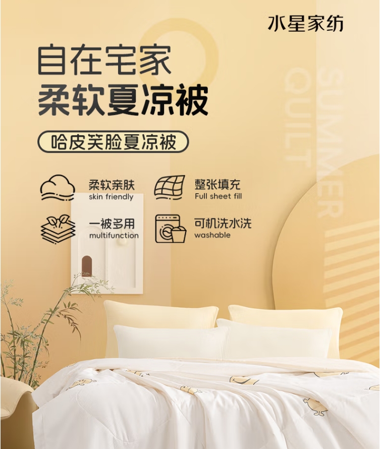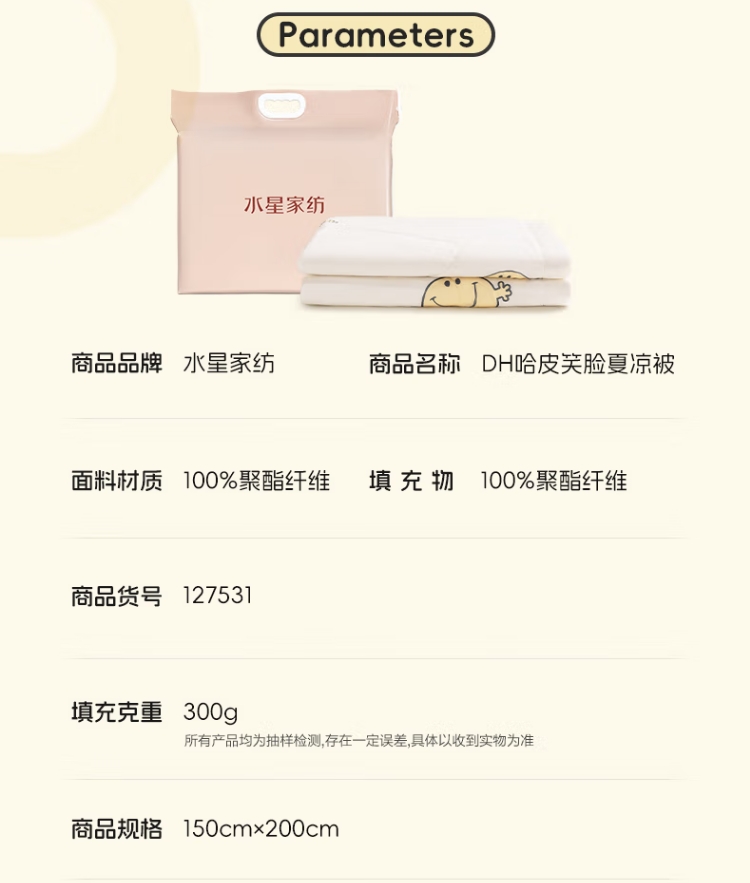 商品名称:水星家纺 哈皮笑脸夏凉被 150*200cm 127531