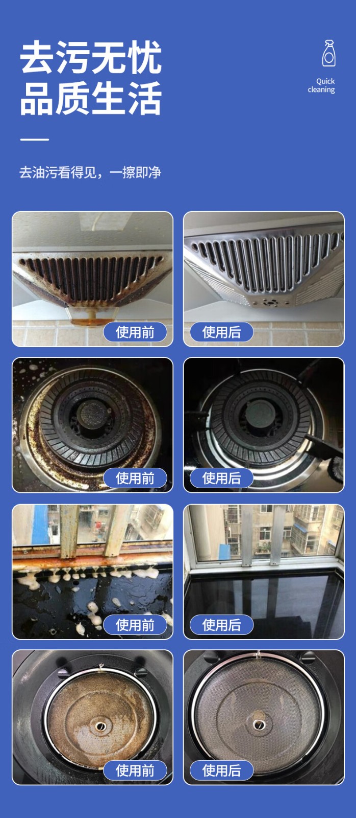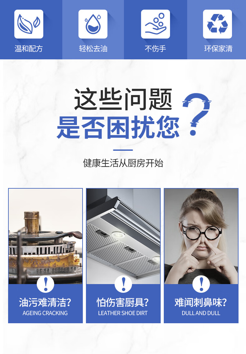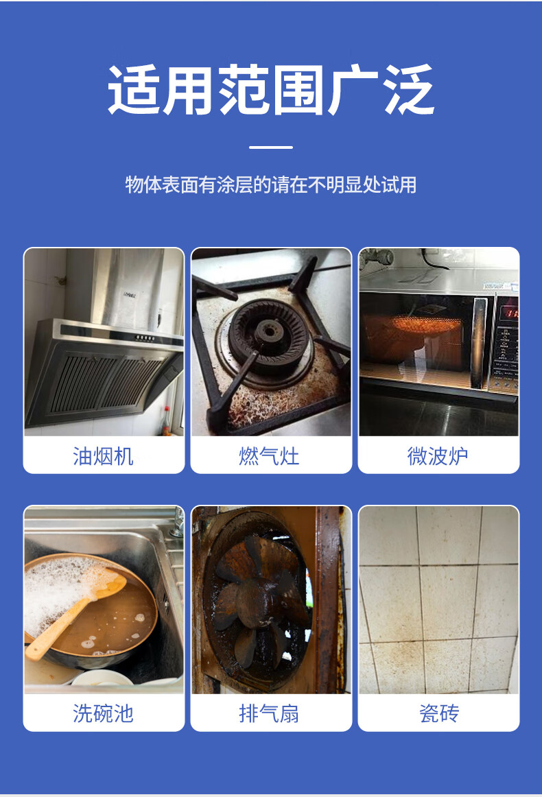 适用于油烟机、微波炉、餐桌、灶台、玻璃瓷砖、排气扇、冰箱等物体表面