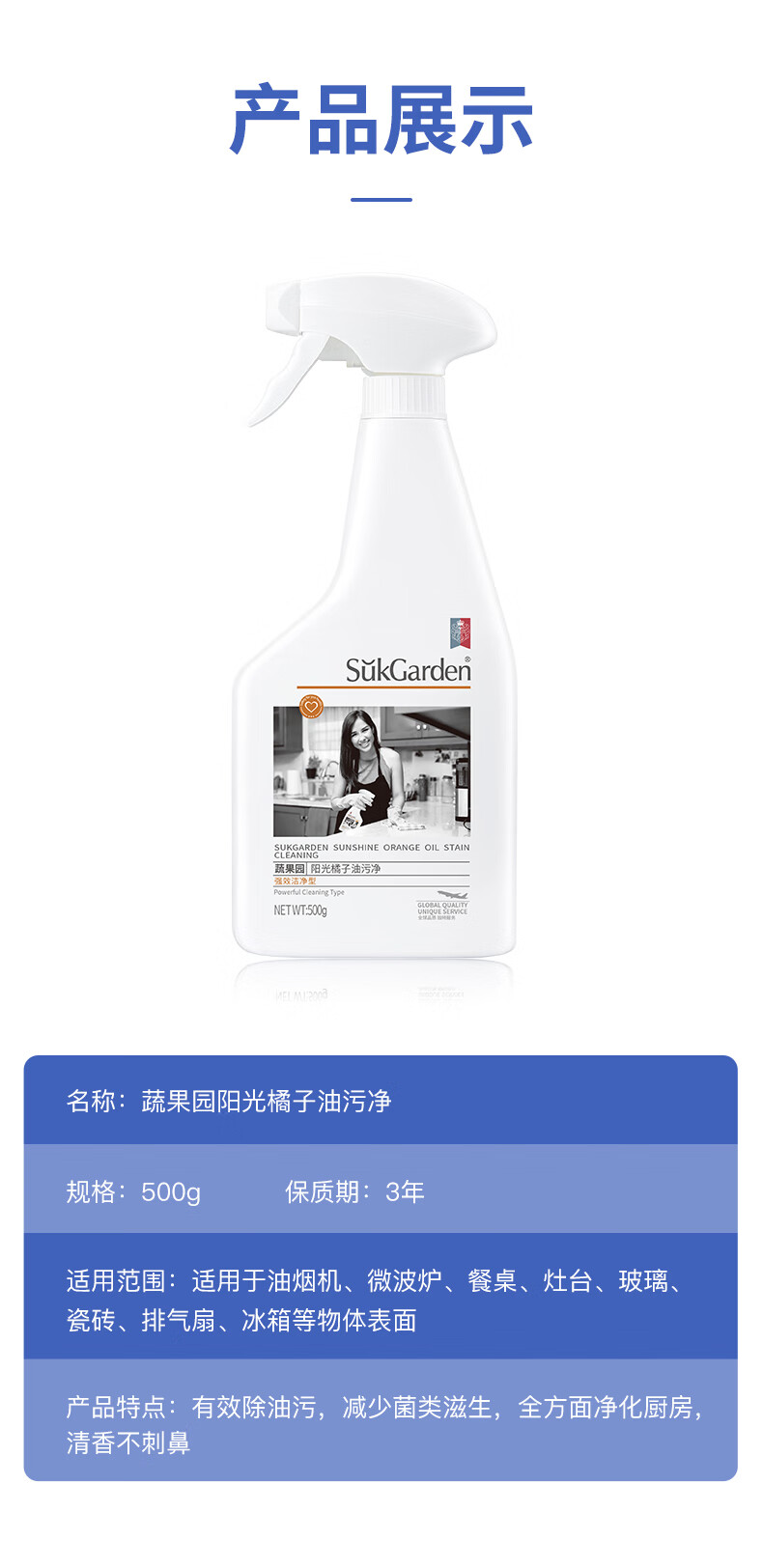 商品名称:蔬果园 SukGarden 阳光橘子油污净(盖装)-500g SGY0048