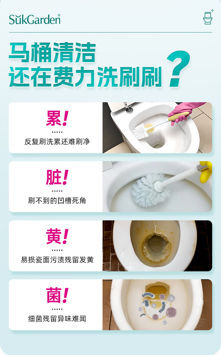 座式或蹲式马桶的尿垢、便垢、黄渍、霉污等各种污垢