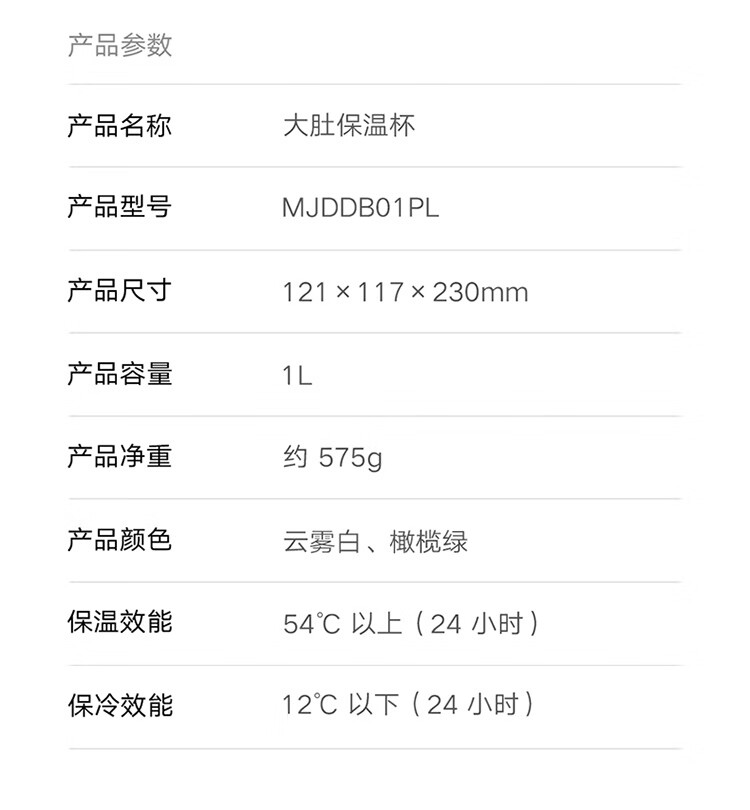 商品名称:小米 大肚保温杯316L便携水杯 1L