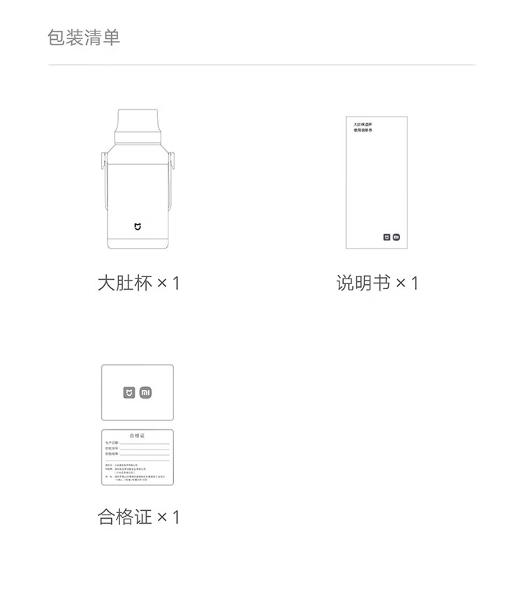 配置清单 :大肚保温杯*1 说明书*1 合格证*1