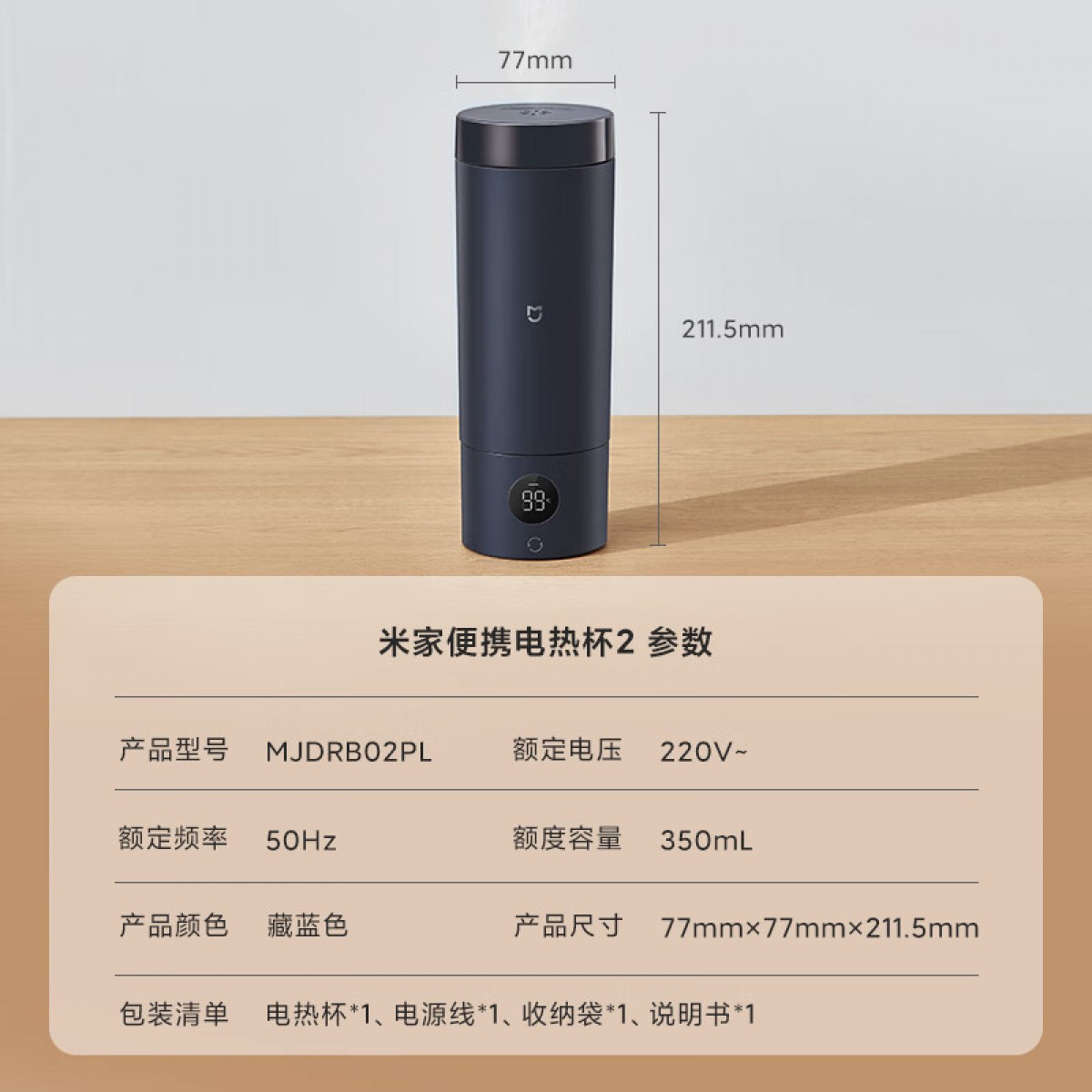 商品名称:小米 电热水杯加热杯热水壶 保温烧水杯 350ml