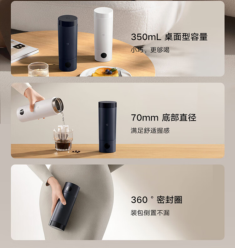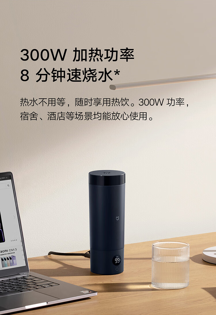 小米 电热水杯加热杯热水壶 保温烧水杯 350ml
