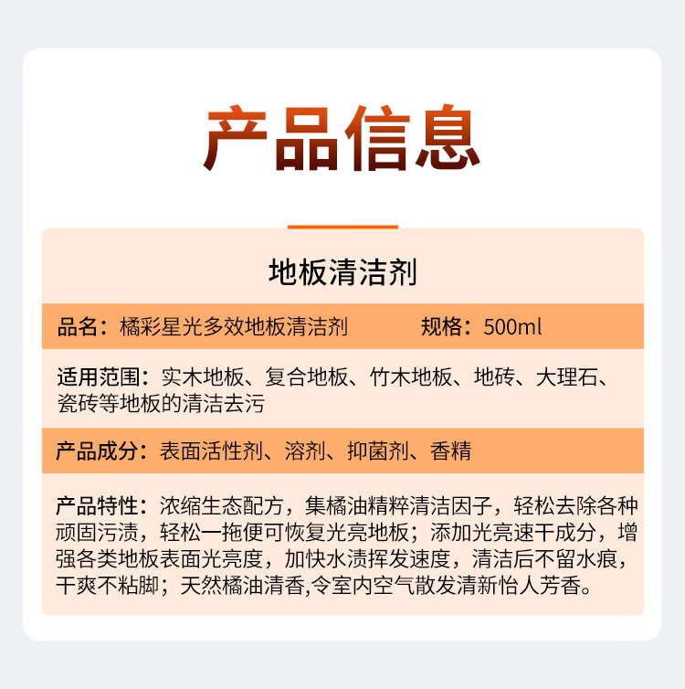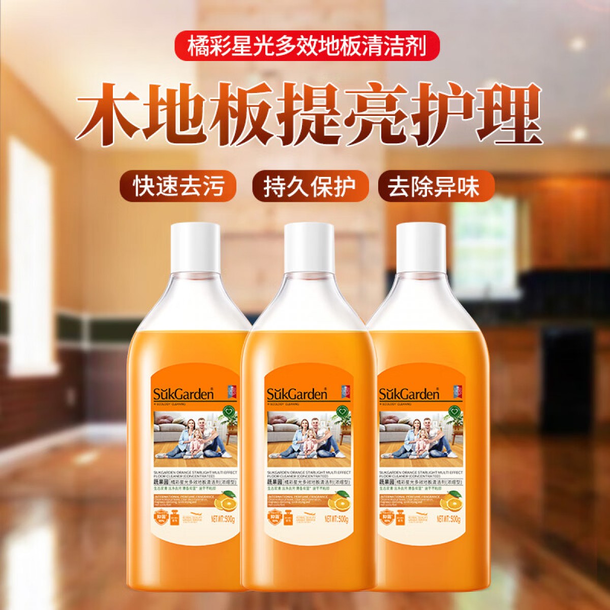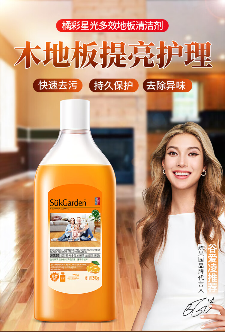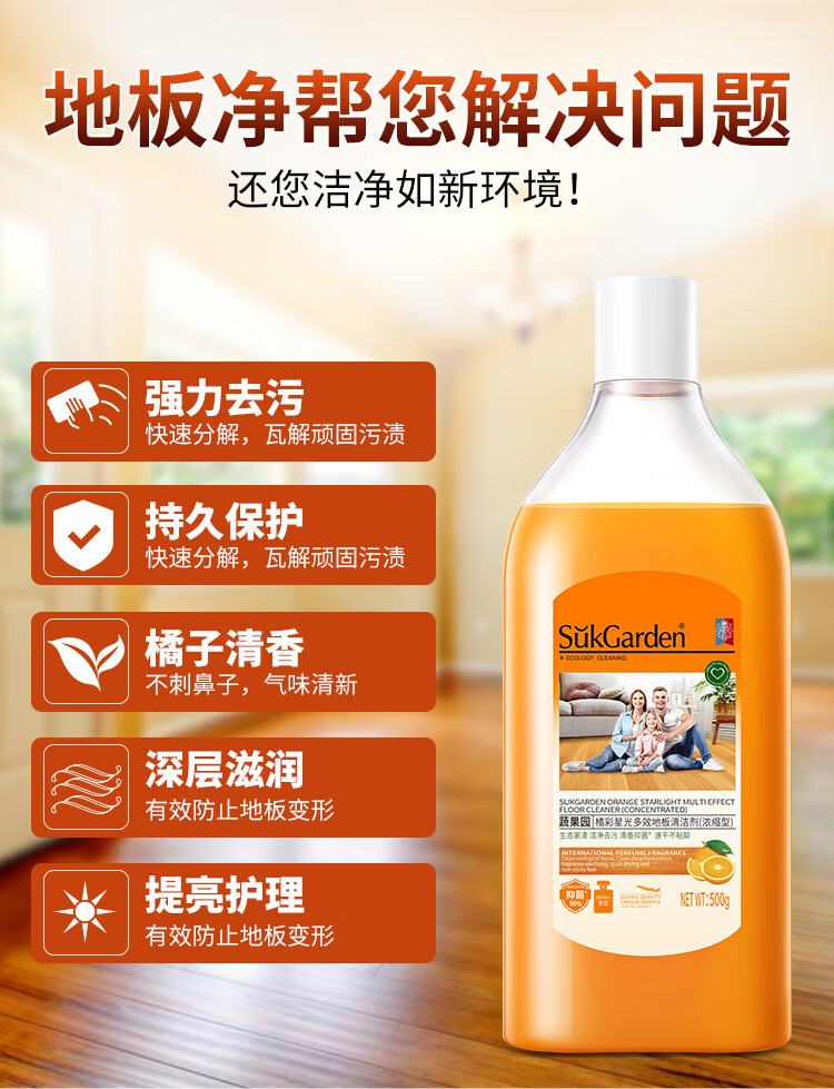 商品名称:蔬果园 SukGarden 橘彩星光多效地板清洁剂-500g SGY0176