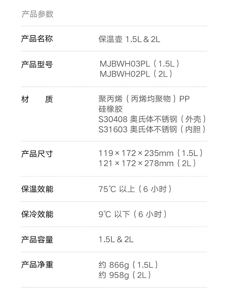 商品名称:小米 保温瓶 316L不锈钢保温壶 1.5L