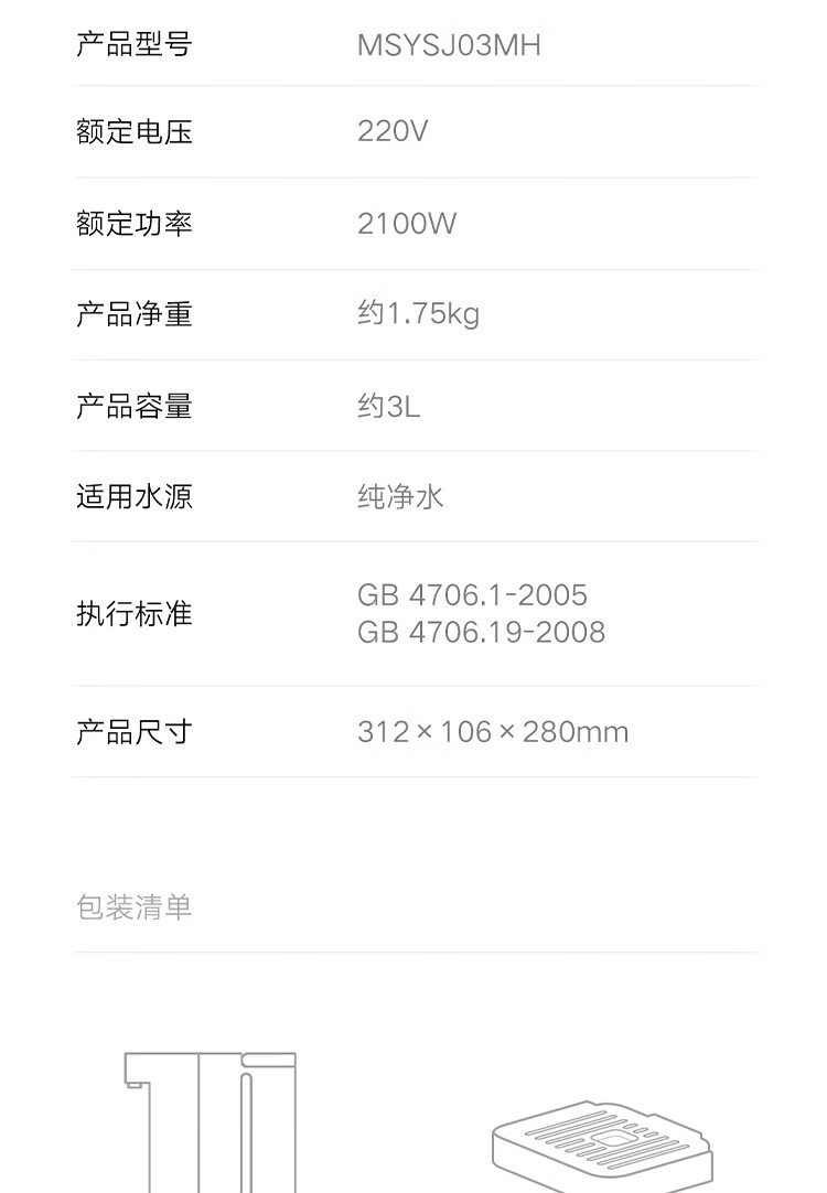 商品名称:小米 米家即热饮水机 3L S1