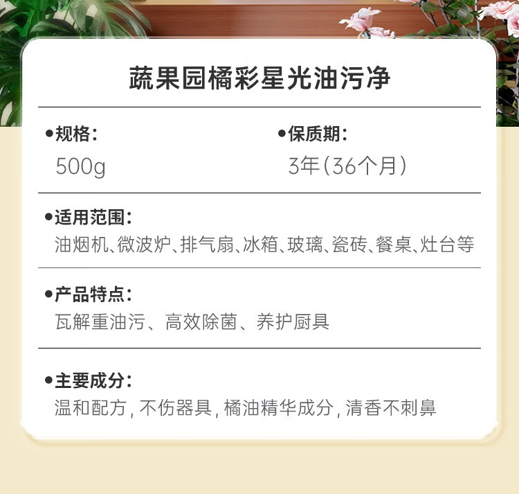 商品名称:蔬果园 SukGarden 橘彩星光油污净-500g SGY0362