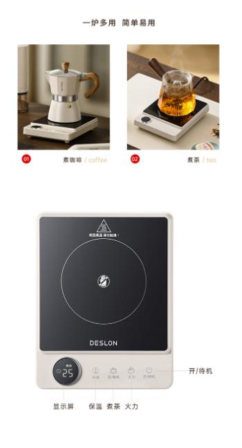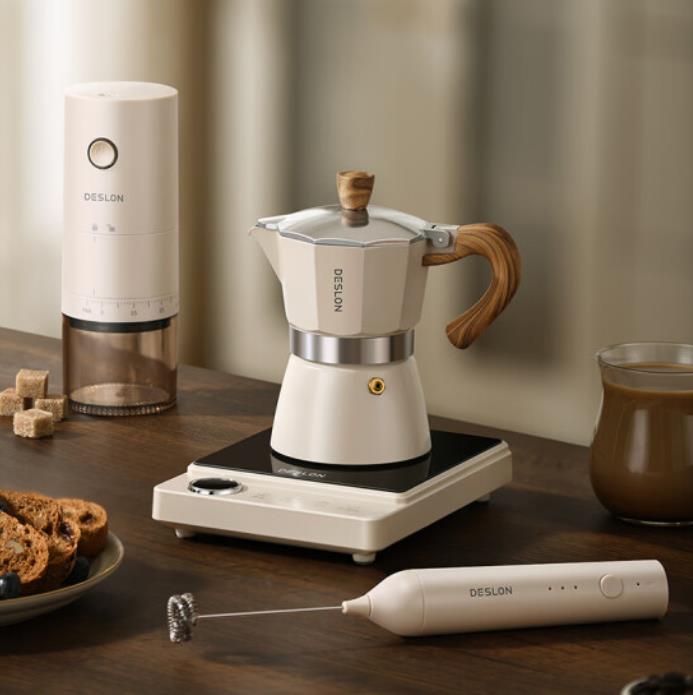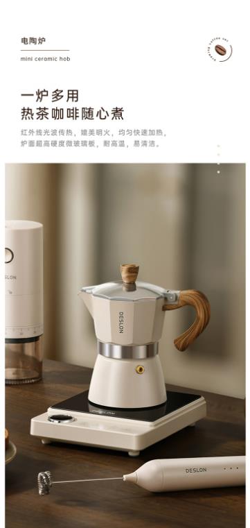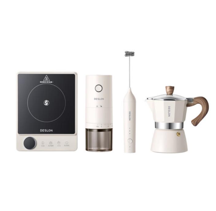 德世朗(DESLON) 咖啡套装 电陶炉 磨豆机 奶泡机 摩卡壶 DDQ-TZ02