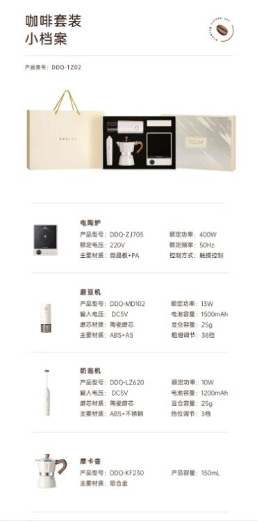 套装规格 :电陶炉 磨豆机 奶泡机 摩卡壶