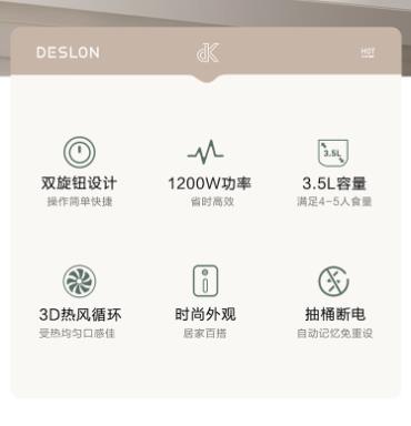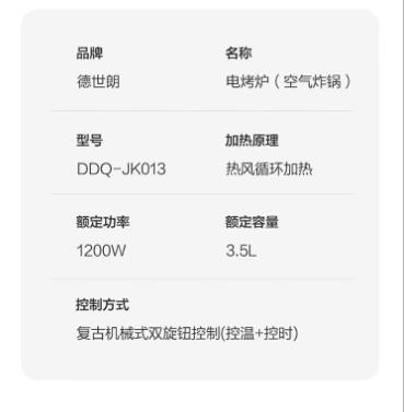 商品名称:德世朗(DESLON)电烤炉空气炸锅可视款 3.5L DDQ-JK013