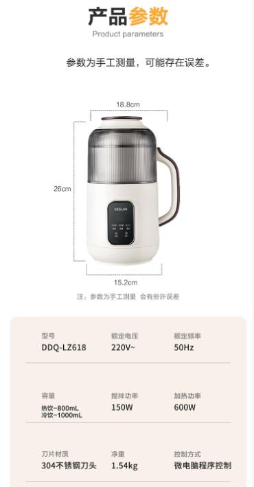 商品名称:德世朗(DESLON) 破壁豆浆机 1L DDQ-LZ618