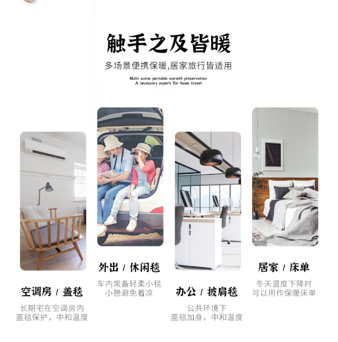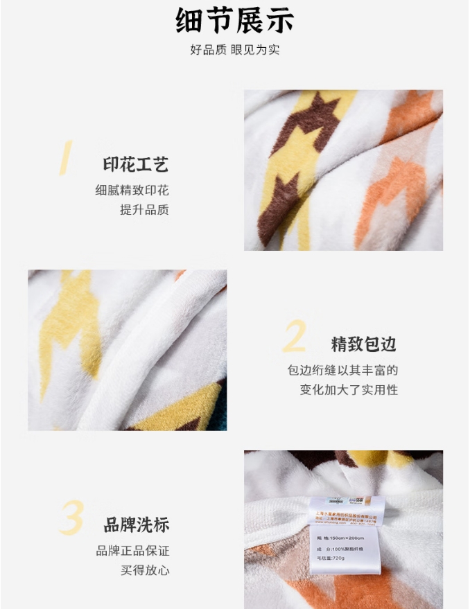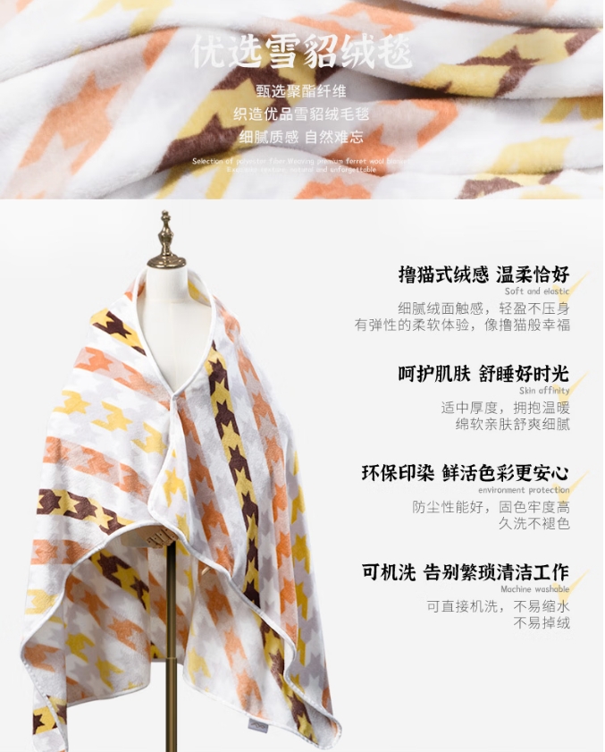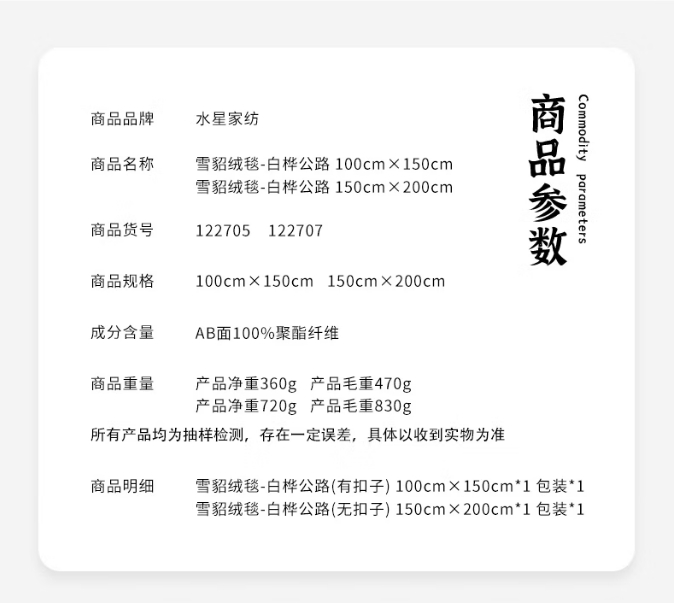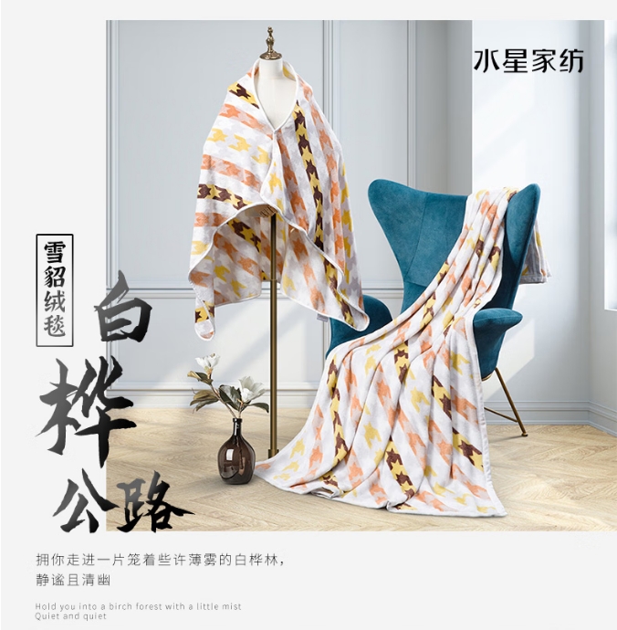 商品名称:水星家纺 白桦公路法兰绒毯 披肩款 100*150cm 122705