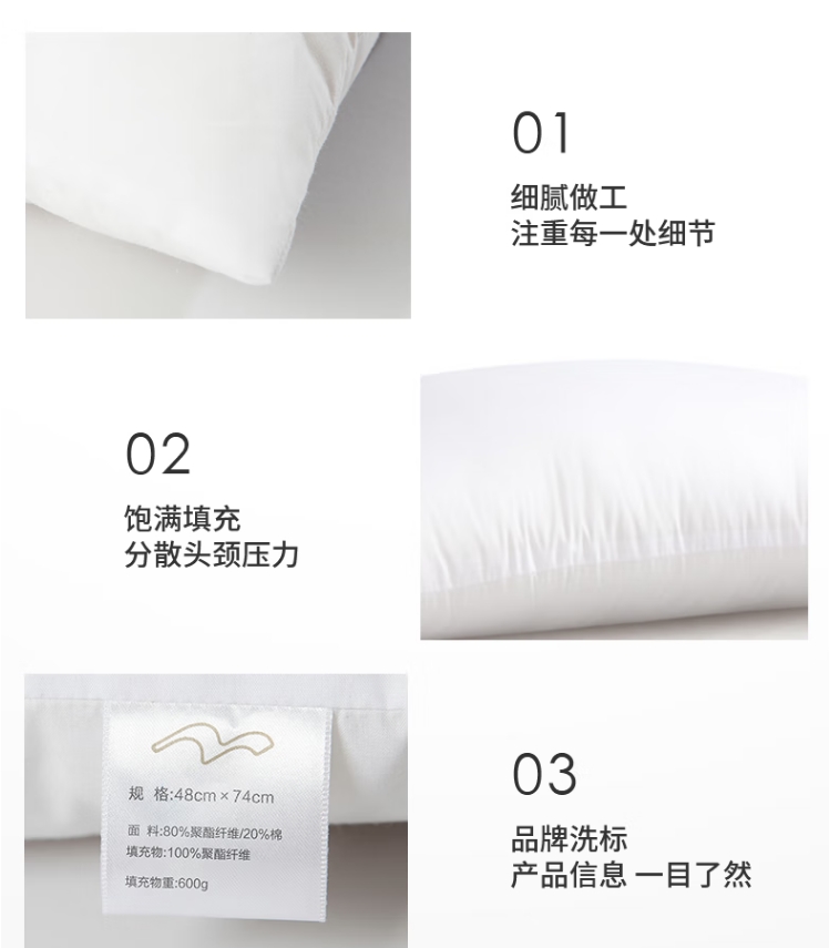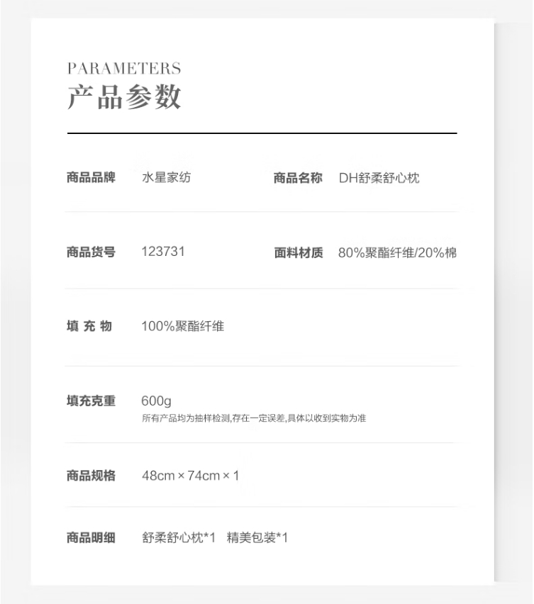 商品名称:水星家纺 舒柔舒心枕 48*74cm 123731