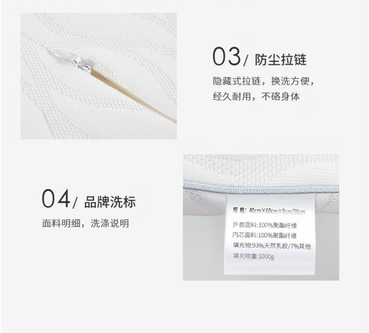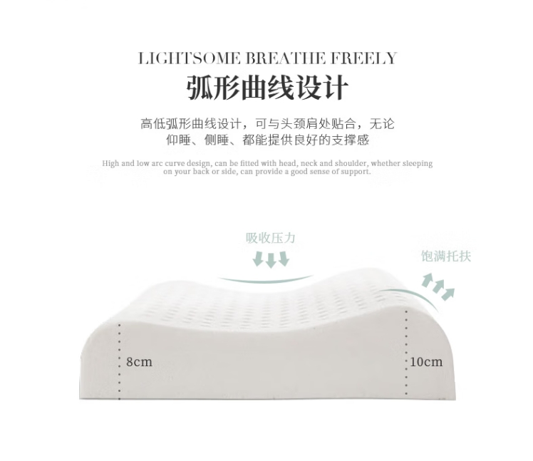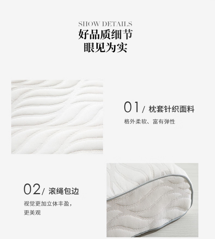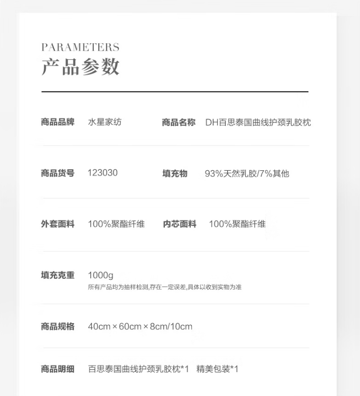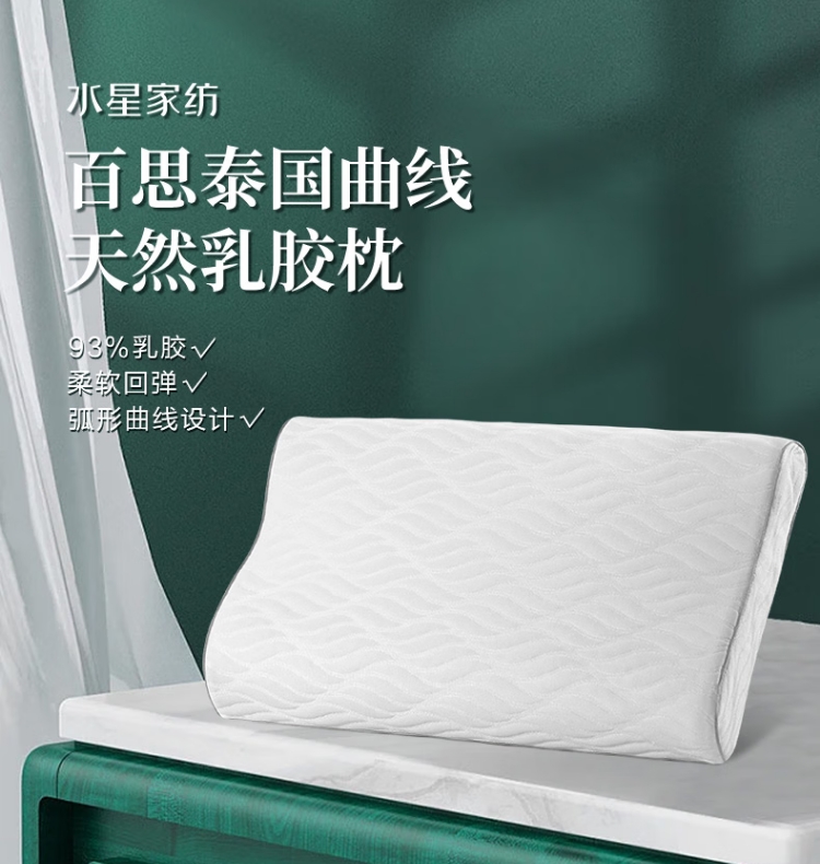 商品名称:水星家纺 百思曲线天然乳胶枕 40*60*8/10cm 123030