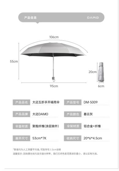 商品名称:大迈 五折手开晴雨伞 暮云灰 DM-5009