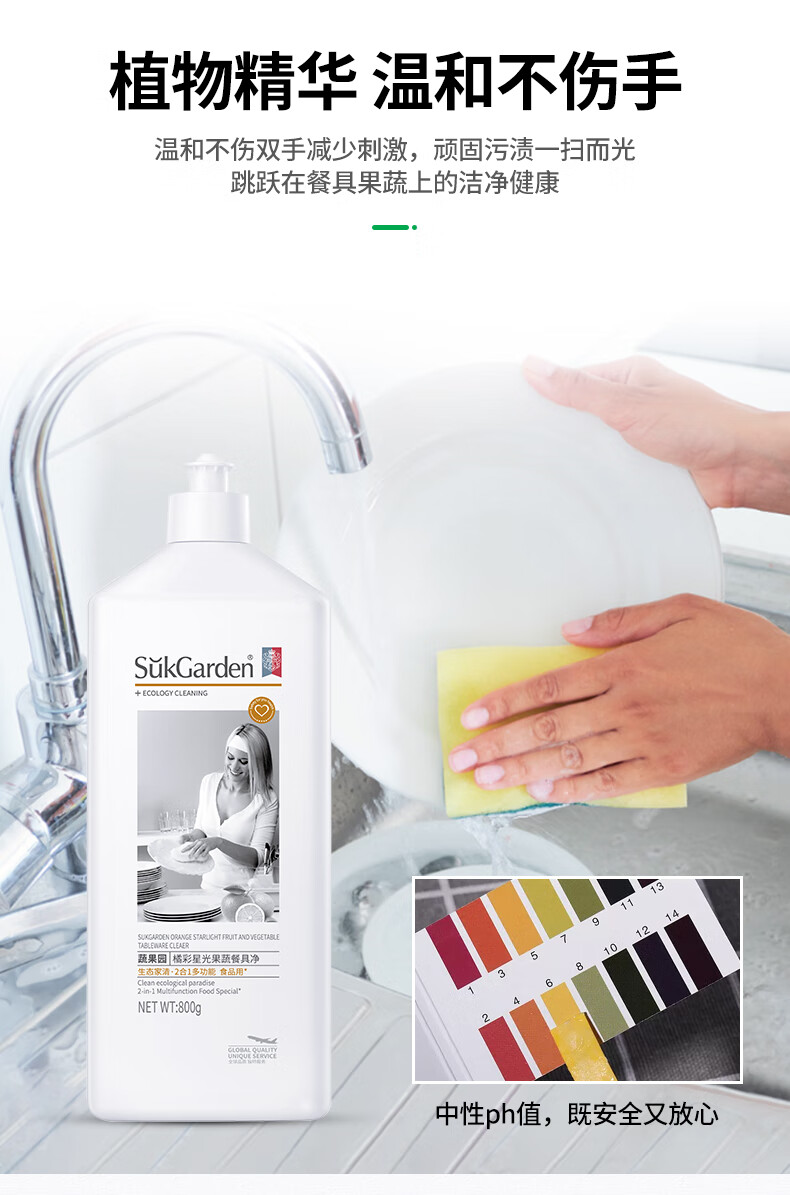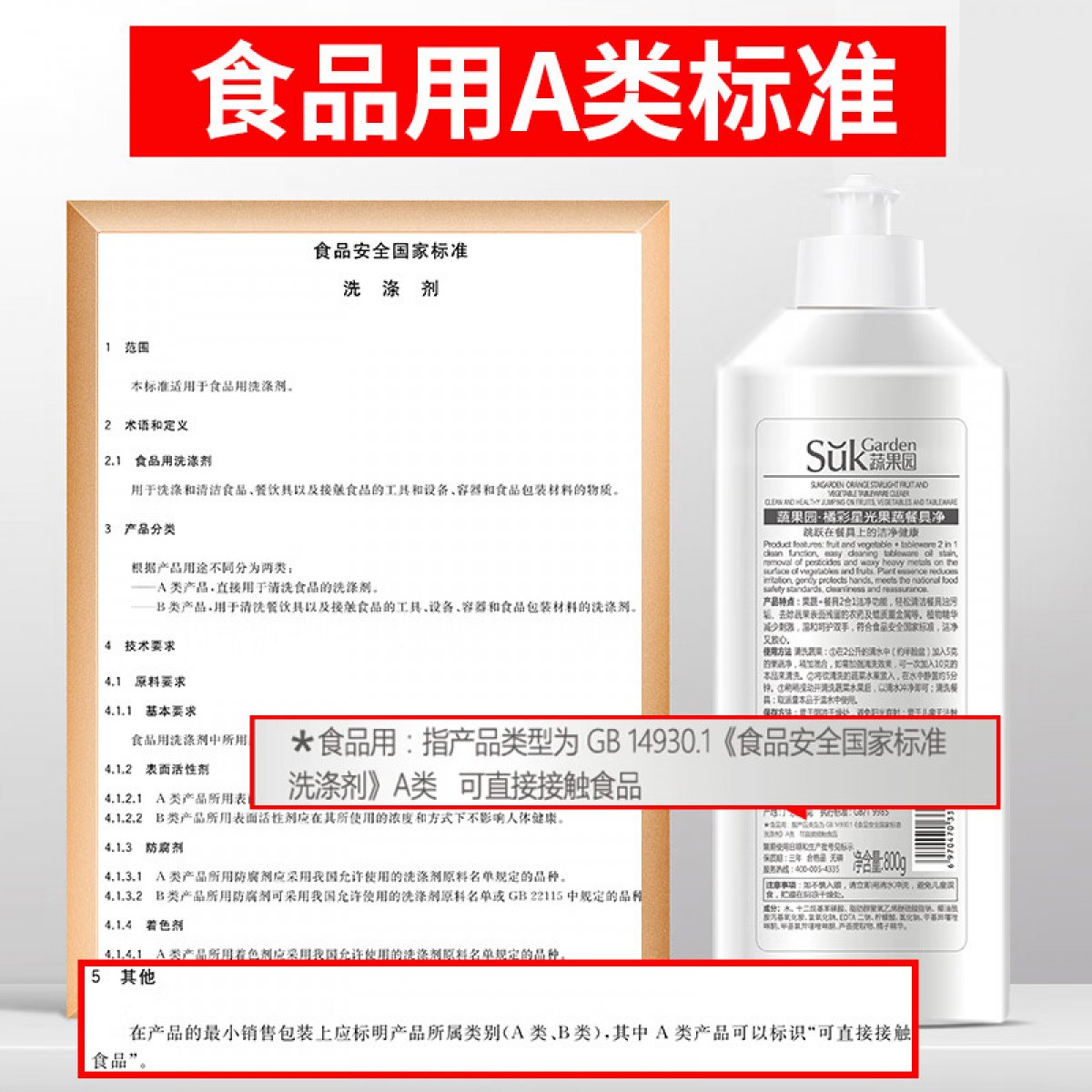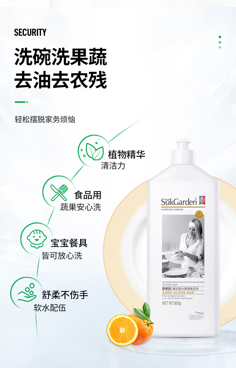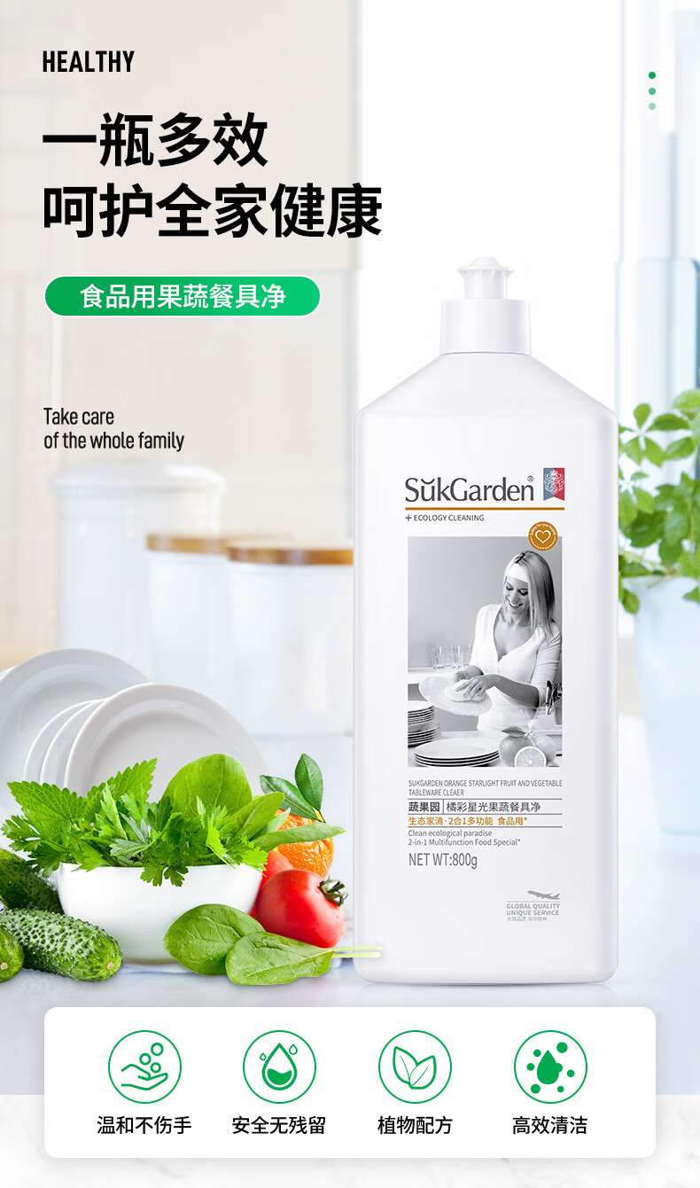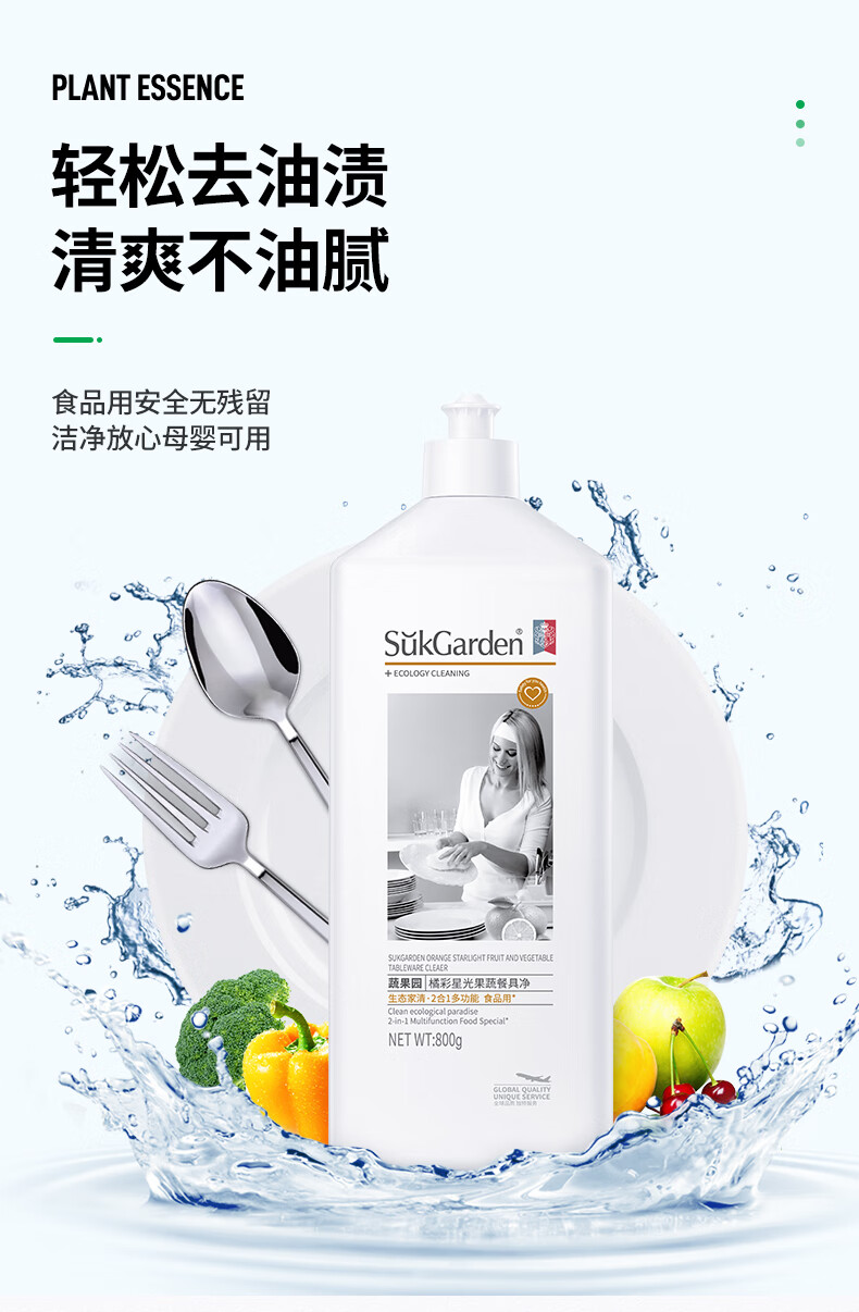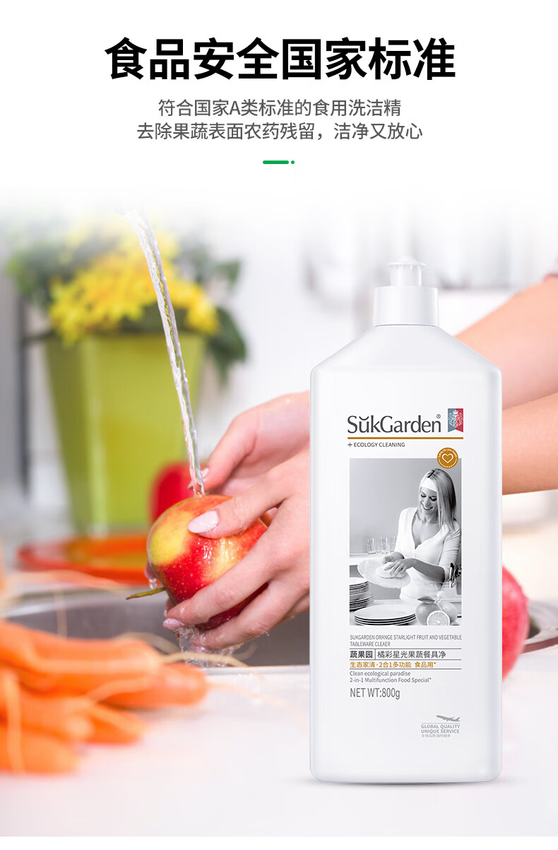 蔬果园 SukGarden 橘彩星光果蔬餐具净(实白瓶)拔盖装-800g SGY0002