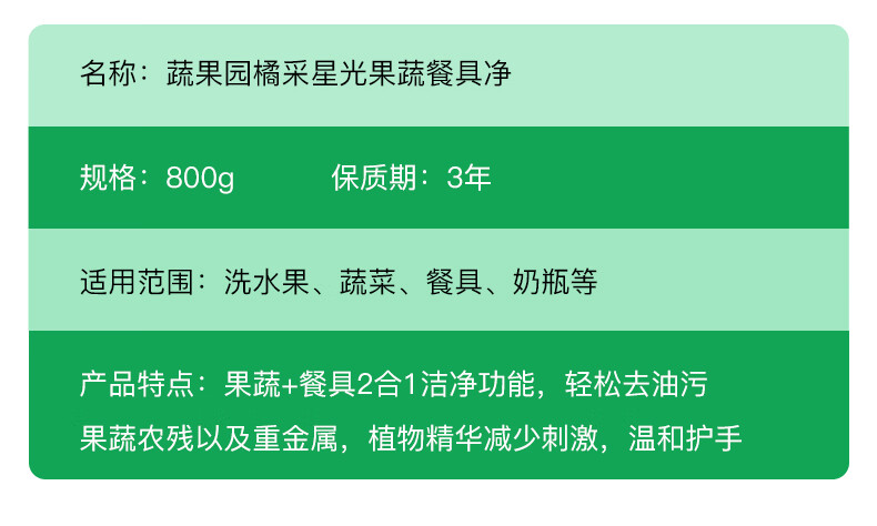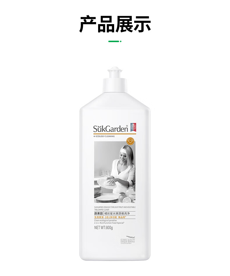 商品名称:蔬果园 SukGarden 橘彩星光果蔬餐具净(实白瓶)拔盖装-800g SGY0002