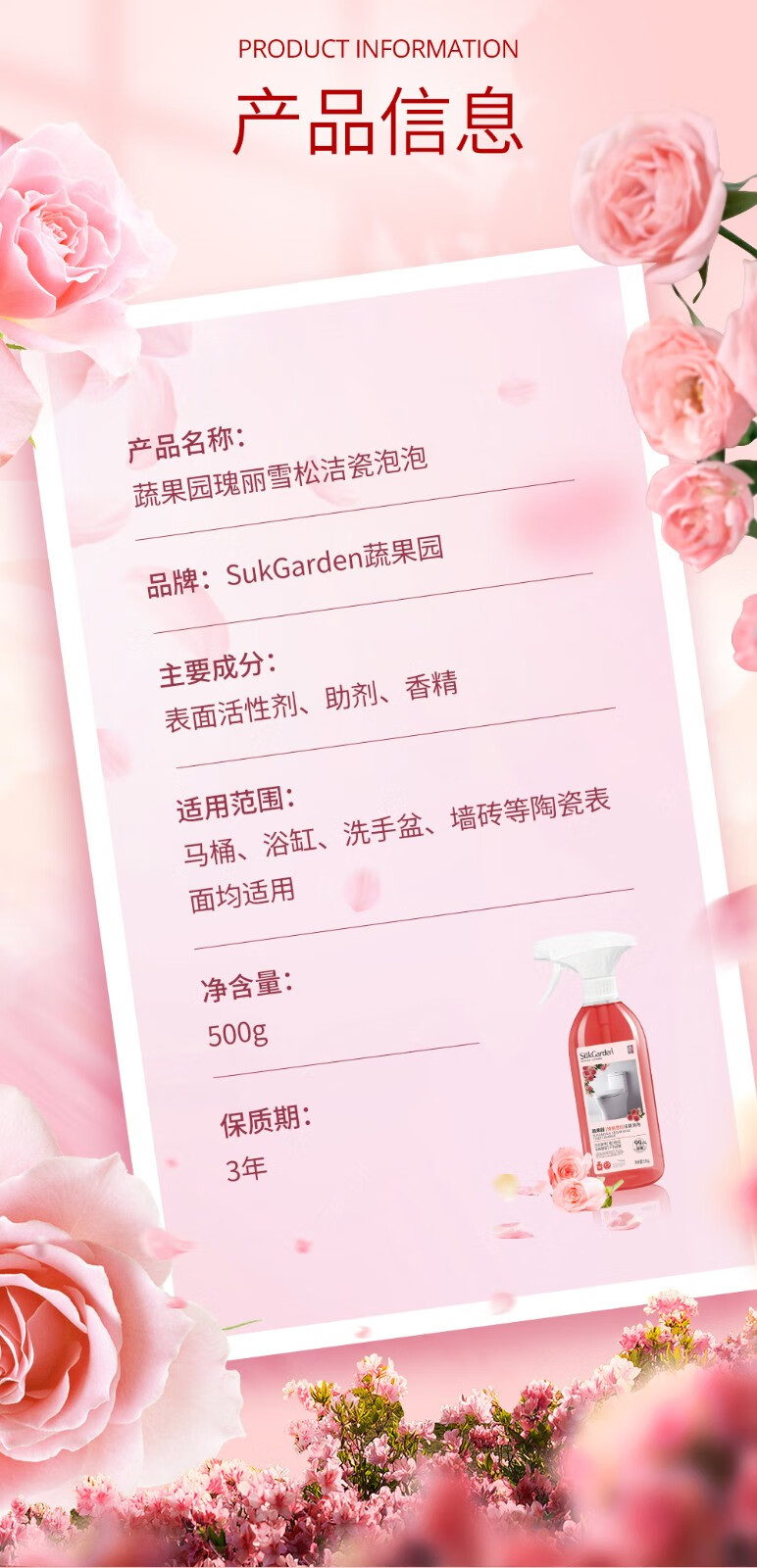 商品名称:蔬果园 SukGarden 瑰丽雪松洁瓷泡泡(喷枪装)-500g SGY0402