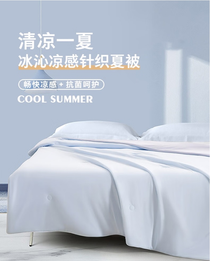商品名称:水星家纺 遇渐系列——冰沁凉感针织夏被150×200cm(浅灰绿色)125579/(浅灰蓝色)125580