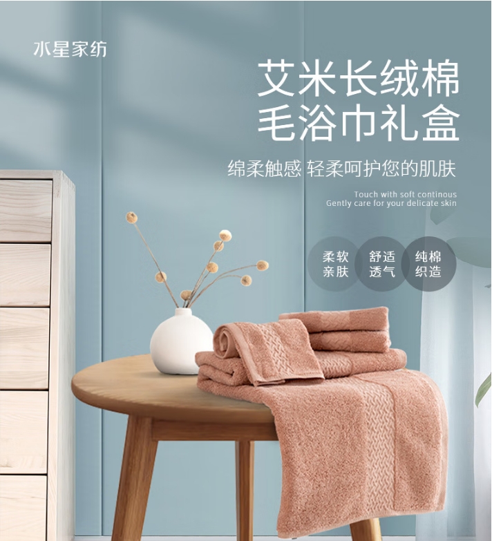 水星家纺 艾米长绒棉毛巾(柔玫瑰色)35*70cm 122266