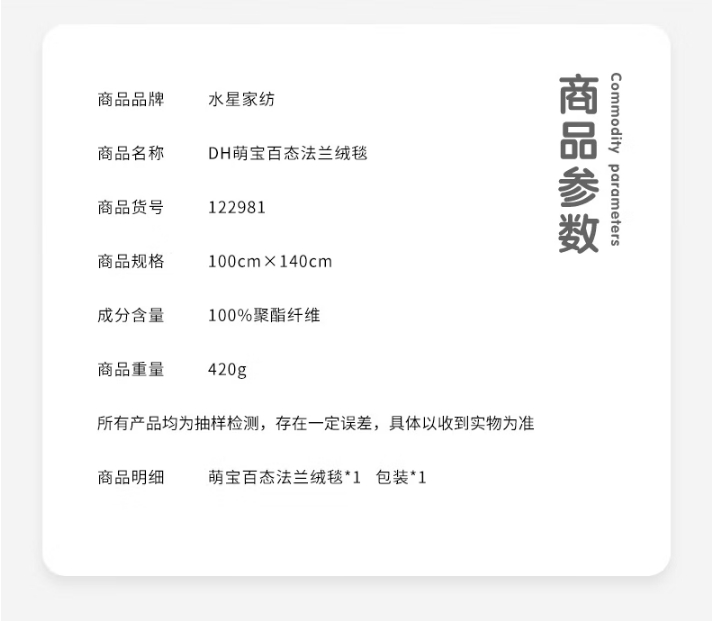 商品名称:水星家纺 萌宝百态法兰绒毯 100cm×140cm 122981