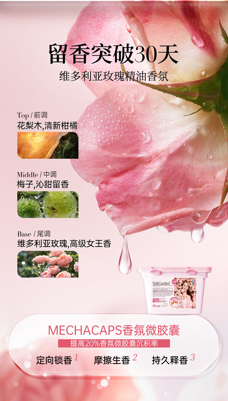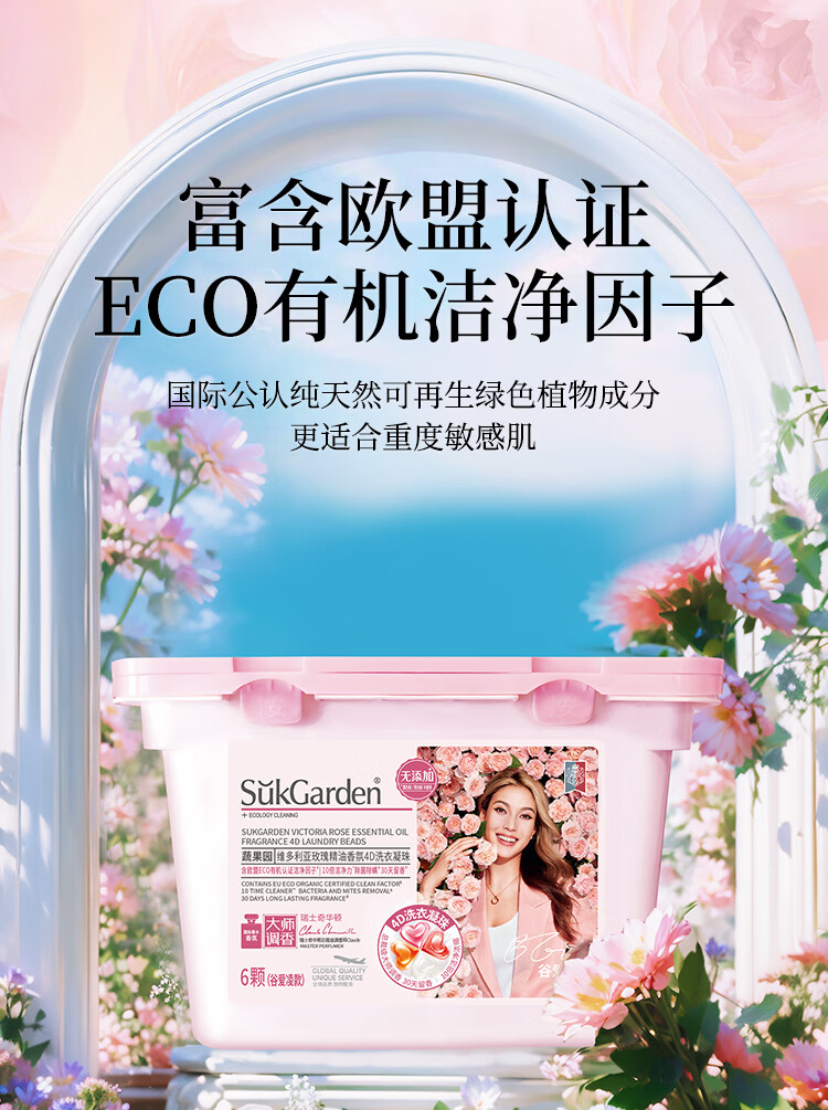 商品名称:蔬果园 SukGarden 天然玫瑰精油香氛4D洗衣凝珠(谷爱凌款)-10g*6颗 SGY0440