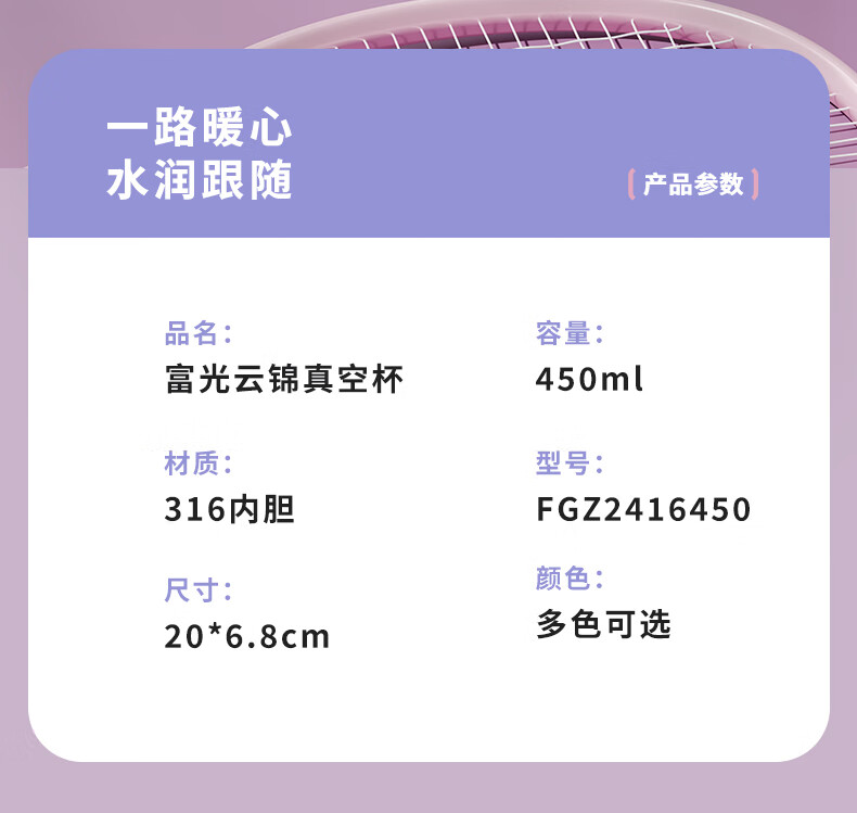 商品名称:富光(Fuguang)云锦真空杯(专供包销款)450ML FGZ2416-450