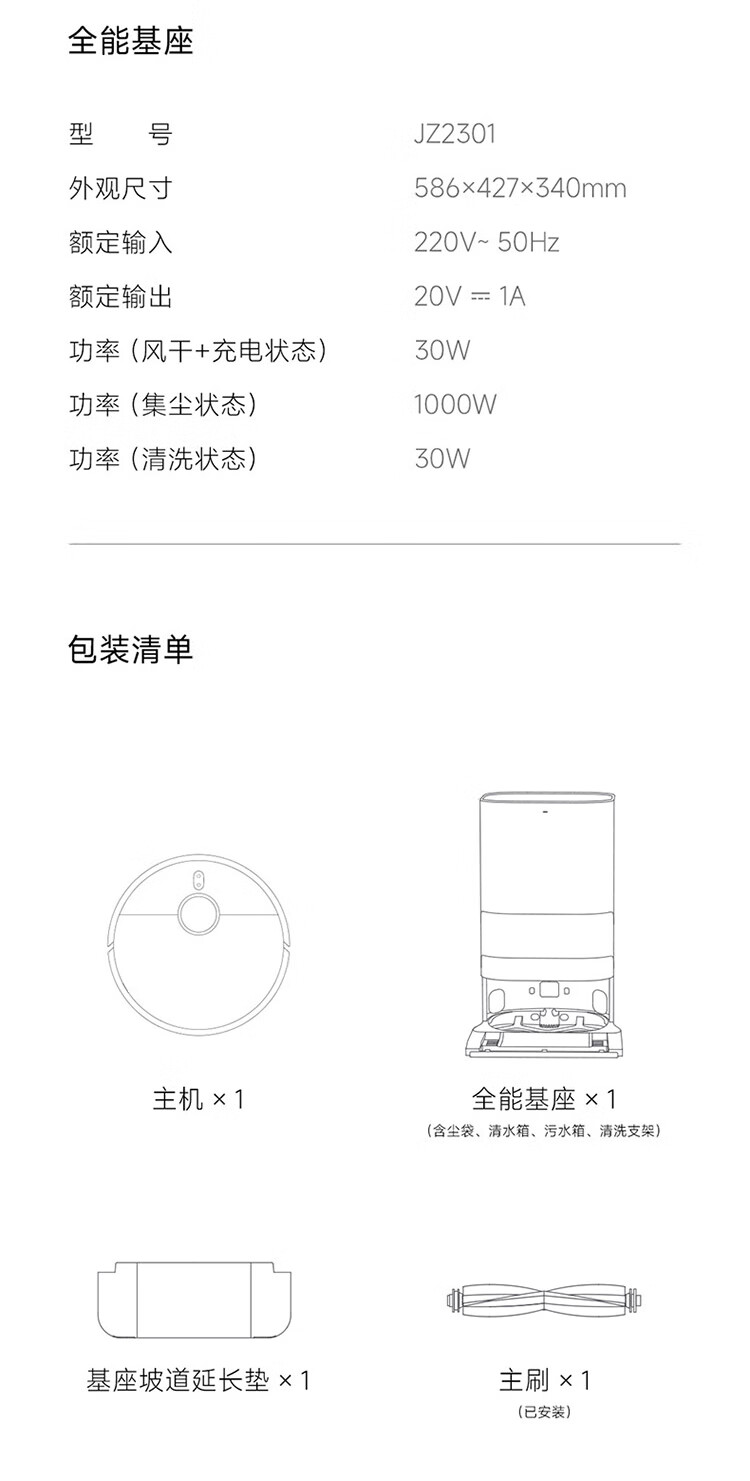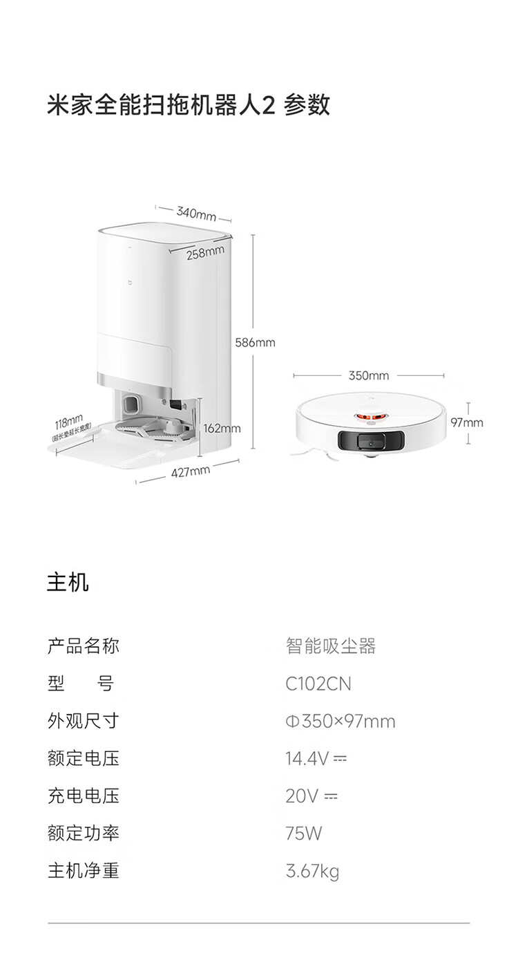 商品名称:小米 全能扫拖机器人2 2.5L尘盒