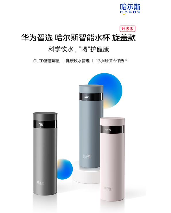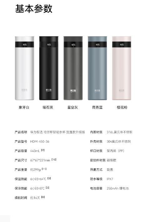 商品名称:哈尔斯 华为智选智能保温杯旋盖款升级版 440ml HDM-450-36-UPBK(曜石黑 )