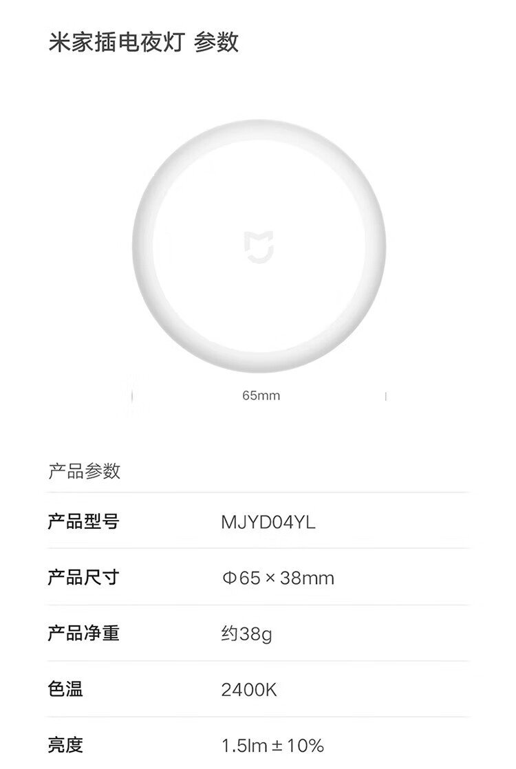 商品名称:小米 米家插电夜灯 0.4w