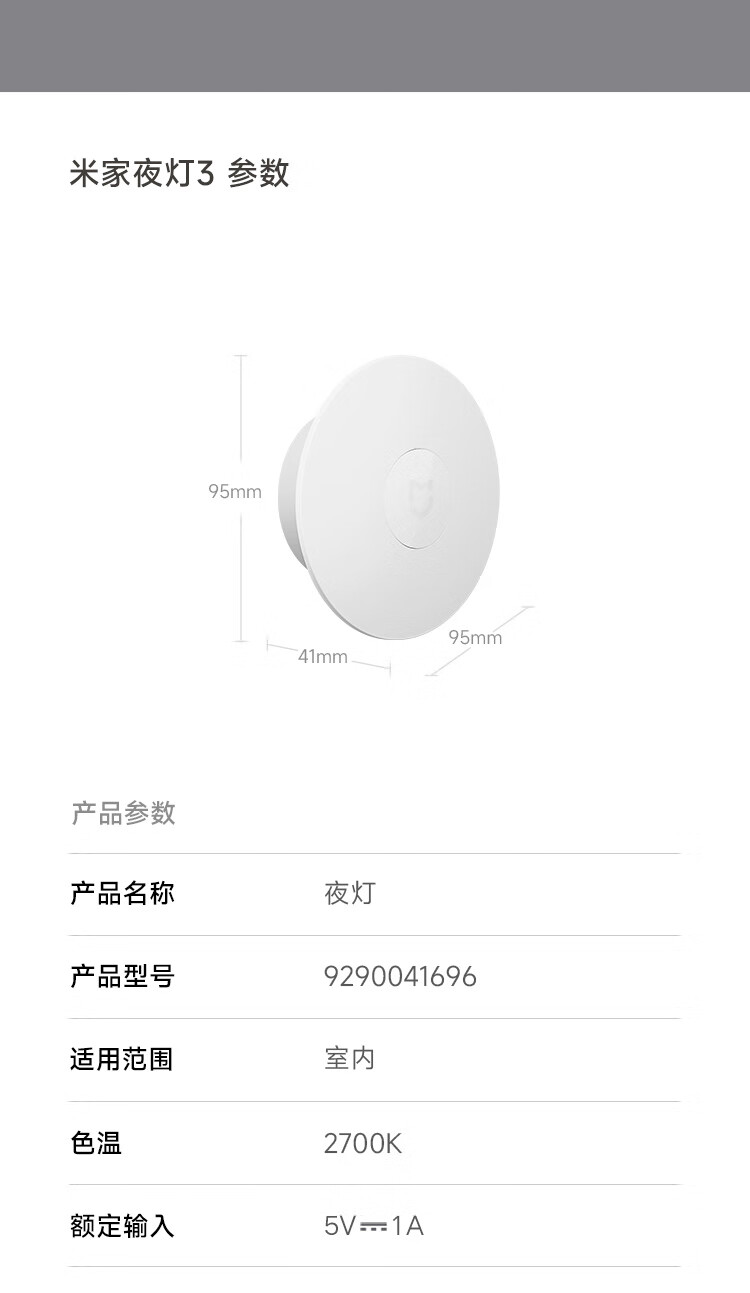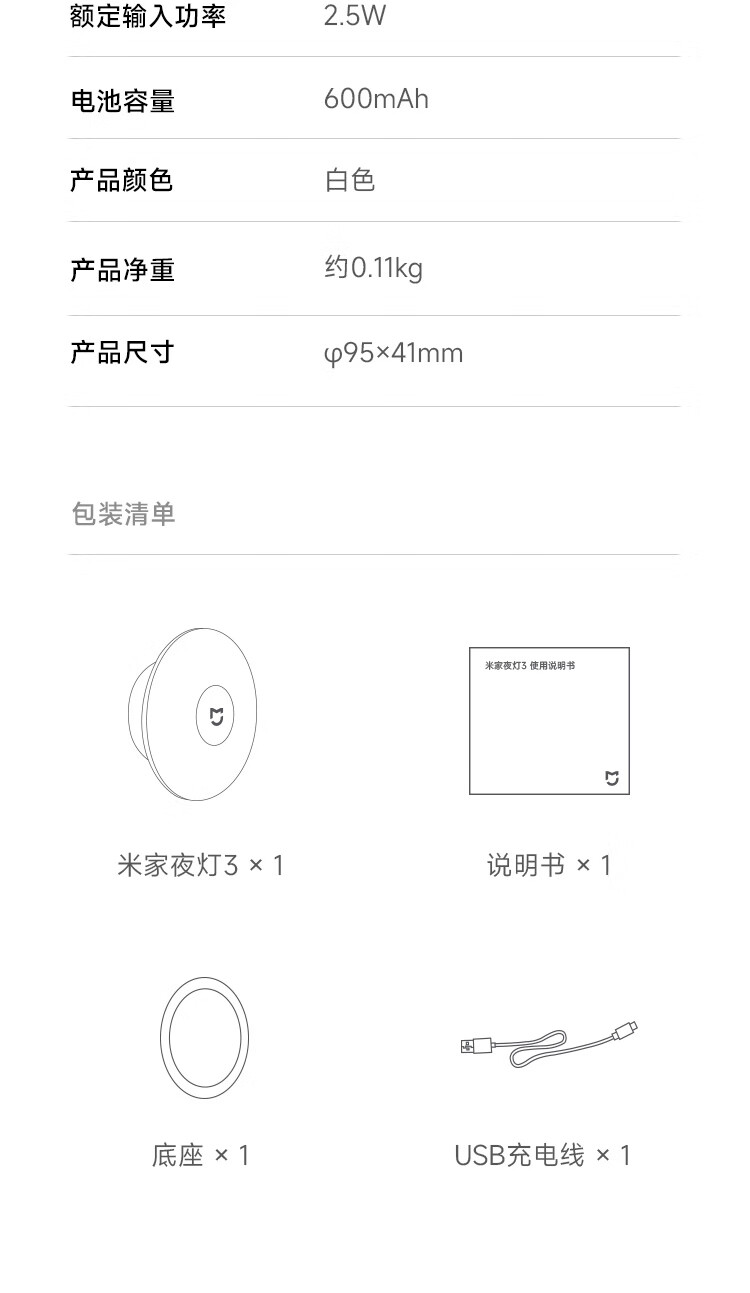 商品名称:小米 米家夜灯3 2.5w